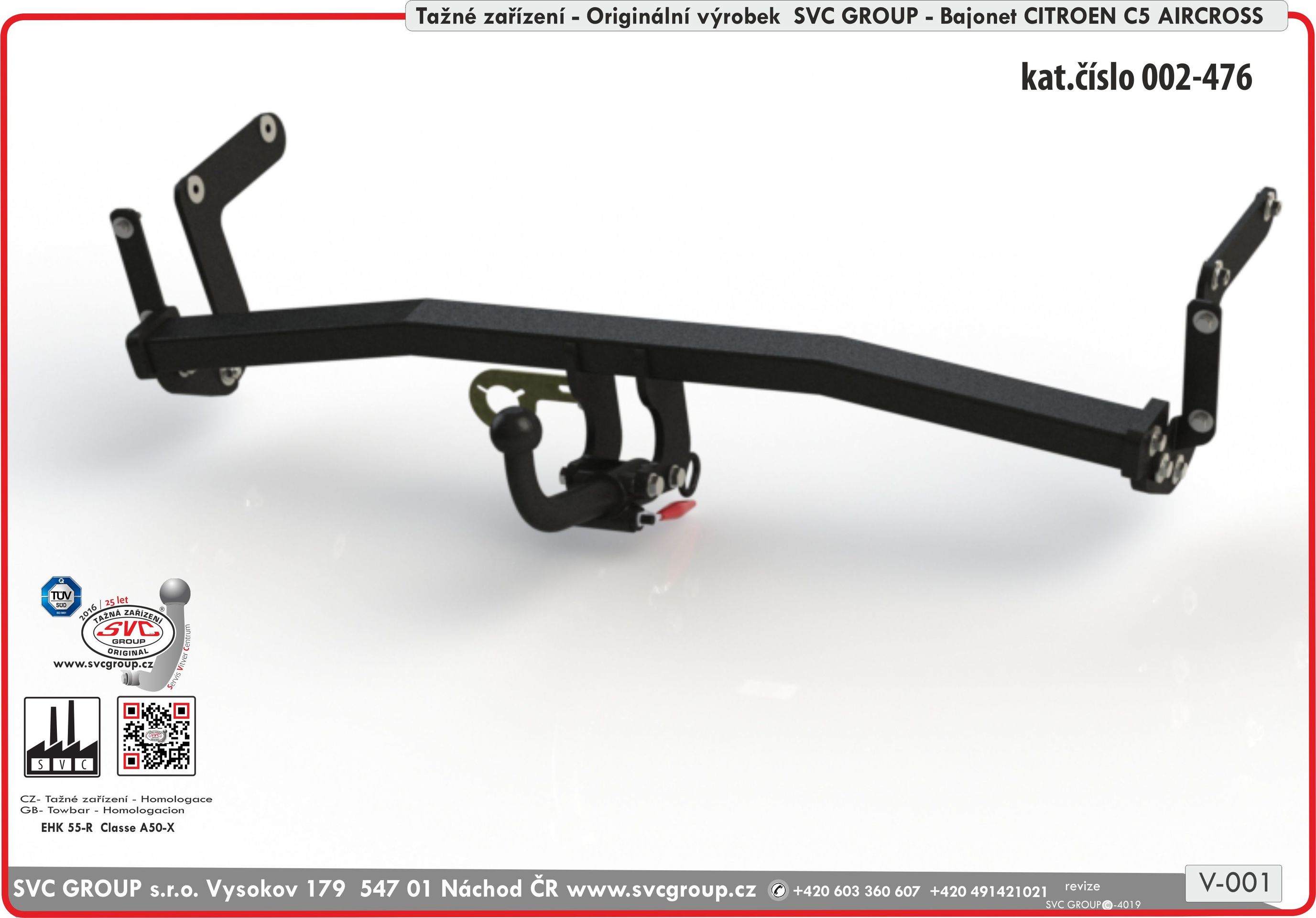 Výrobek je vyráběný dle požadavku vozu a Homologovaný pro prodej a provoz ve všech státech EU dle příslušných norem EHK-55R, podle zastaralé normy e94/20 zrušené již v roce 2016, která nesplňuje, dlouhodobě podmínky pro provoz nevyrábíme. Chráněný vzor SVC - bajonet SVMAT-2 je možné zaměnit za dvou šroubové provedení SVC, bez výměny tažného zařízení.
