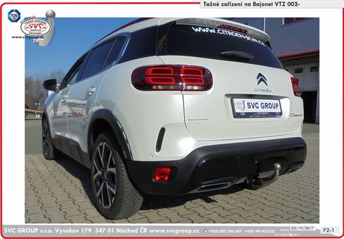 Tažná zařízení demontovatelné na bajonet pro Citroën C5 Aircross 01/2019 -> Tažné zařízení vhodné i pro vozidla s rezervou pod vozem U některých typů vozidel záleží na výbavě, může u dvou šroubového provedení zachytávat kulový čep couvací senzory PDC, proto doporučujeme bajonetové tažné zařízení.  Český výrobce s více jak 40 let na trhu + servis výrobků