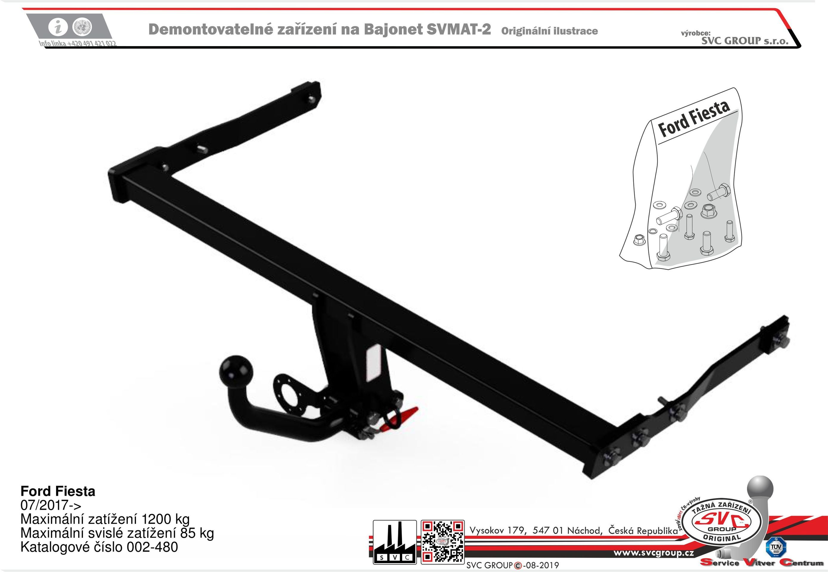 Výrobek je vyráběný dle požadavku vozu a Homologovaný pro prodej a provoz ve všech státech EU dle příslušných norem EHK-55R, podle zastaralé normy e94/20 zrušené již v roce 2016, která nesplňuje, dlouhodobě podmínky pro provoz nevyrábíme. Chráněný vzor SVC - bajonet SVMAT-2 je možné zaměnit za dvou šroubové provedení SVC, bez výměny tažného zařízení.