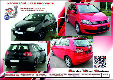 Tažná zařízení pro Volkswagen Golf Typ V, Včetně 4-Motion 10/ 2003 ->12/ 2008 Volkswagen Golf Plus Typ V, Včetně 4-Motion 10/ 2003 ->12/ 2008