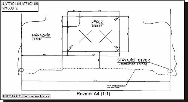 | Výřez je ve viditelné části nárazníku | |