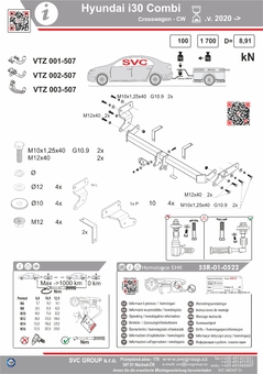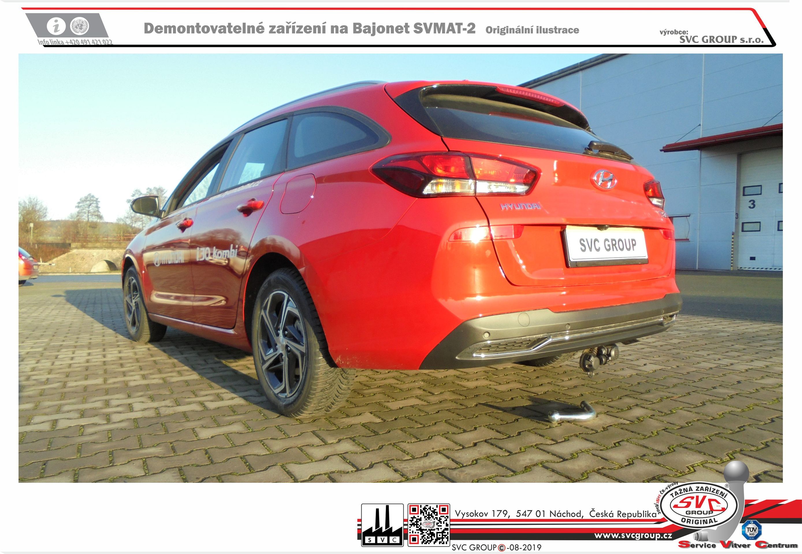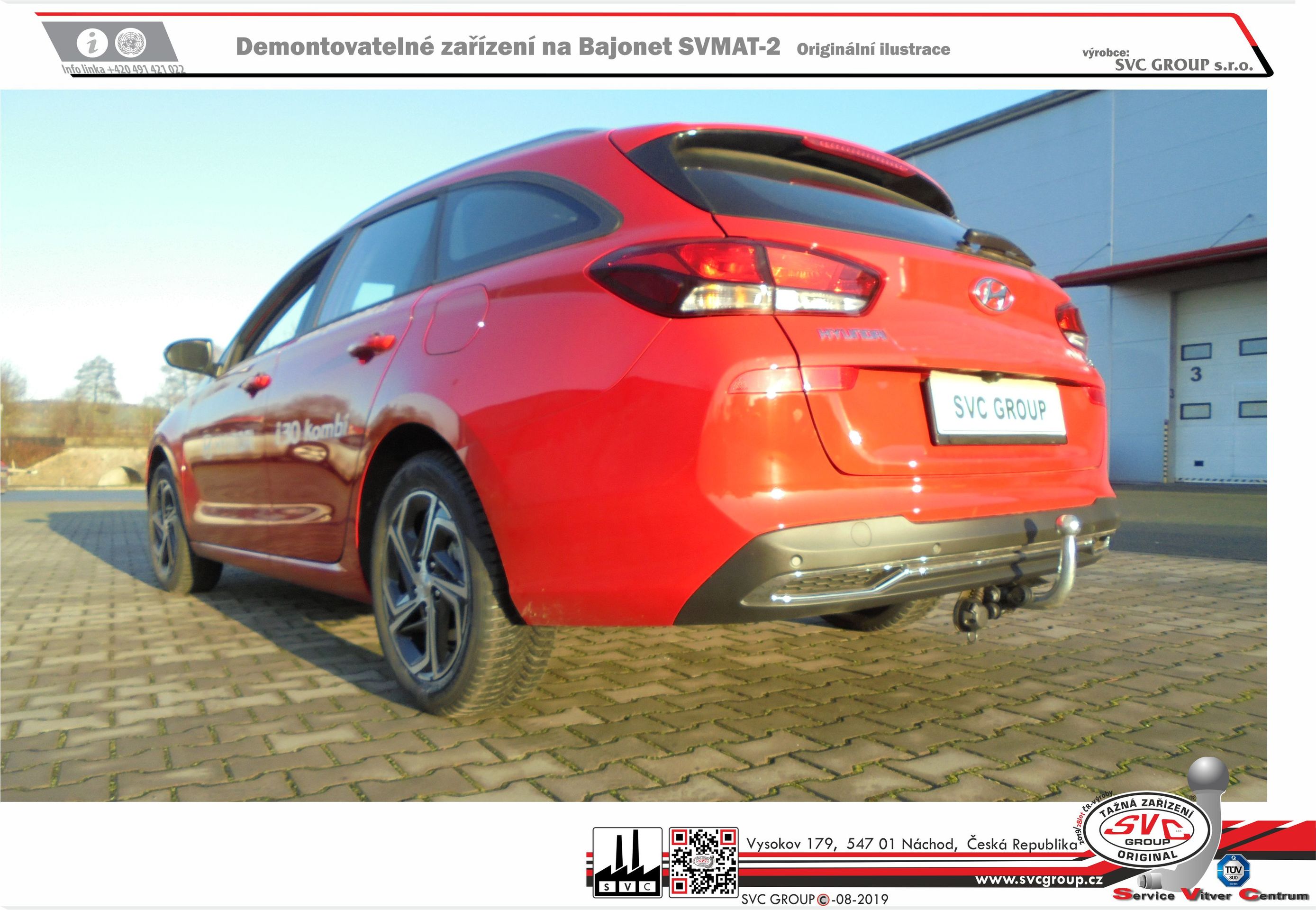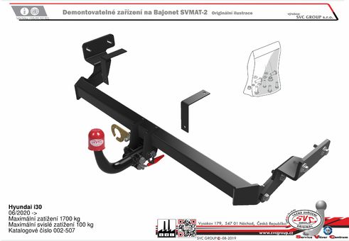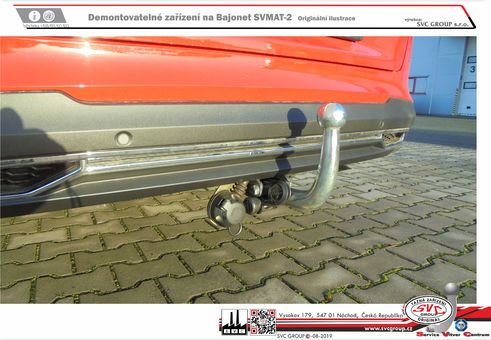 Výrobek je vyráběný dle požadavku vozu a Homologovaný pro prodej a provoz ve všech státech EU dle příslušných norem EHK-55R, podle zastaralé normy e94/20 zrušené již v roce 2016, která nesplňuje, dlouhodobě podmínky pro provoz nevyrábíme. Chráněný vzor SVC - bajonet SVMAT-2 je možné zaměnit za dvou šroubové provedení SVC, bez výměny tažného zařízení.