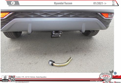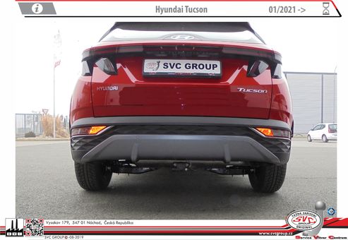 Tažný zařízení pro Hyundai Tucson 2021- včetně typu vozu N-Line / a nožního otevírání zadních dveří - U tohoto typu se pro montáž tažného zařízení nedělá do nárazníku výřez.