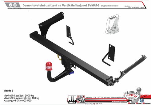 Mazda 6 Sedan + Liftback + Combi - SportWagon tažné zařízení prémiový výrobek vertikální bajonet
