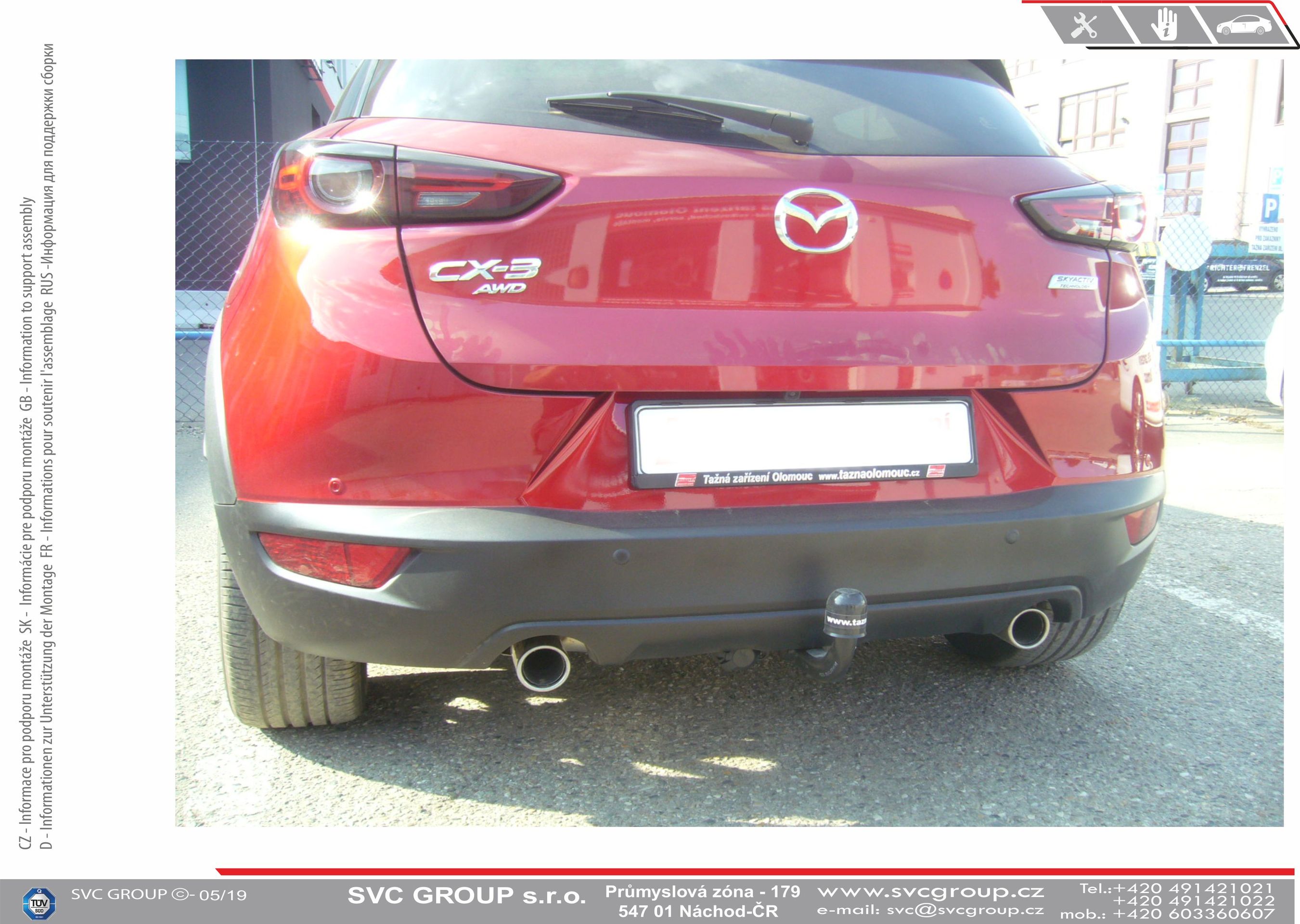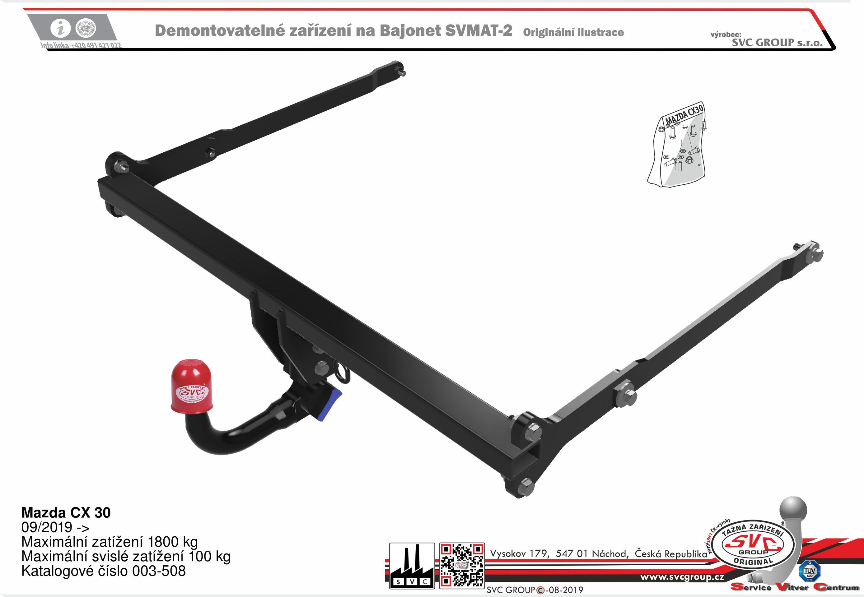 Tažný zařízení pro Mazda CX 30 2019 -> i facelift Včetně typů vozidel s AdBlue. Tažné zařízení plnohodnotně nahrazuje výztuhu pod nárazníkem, což u rovného nosníku není možné.