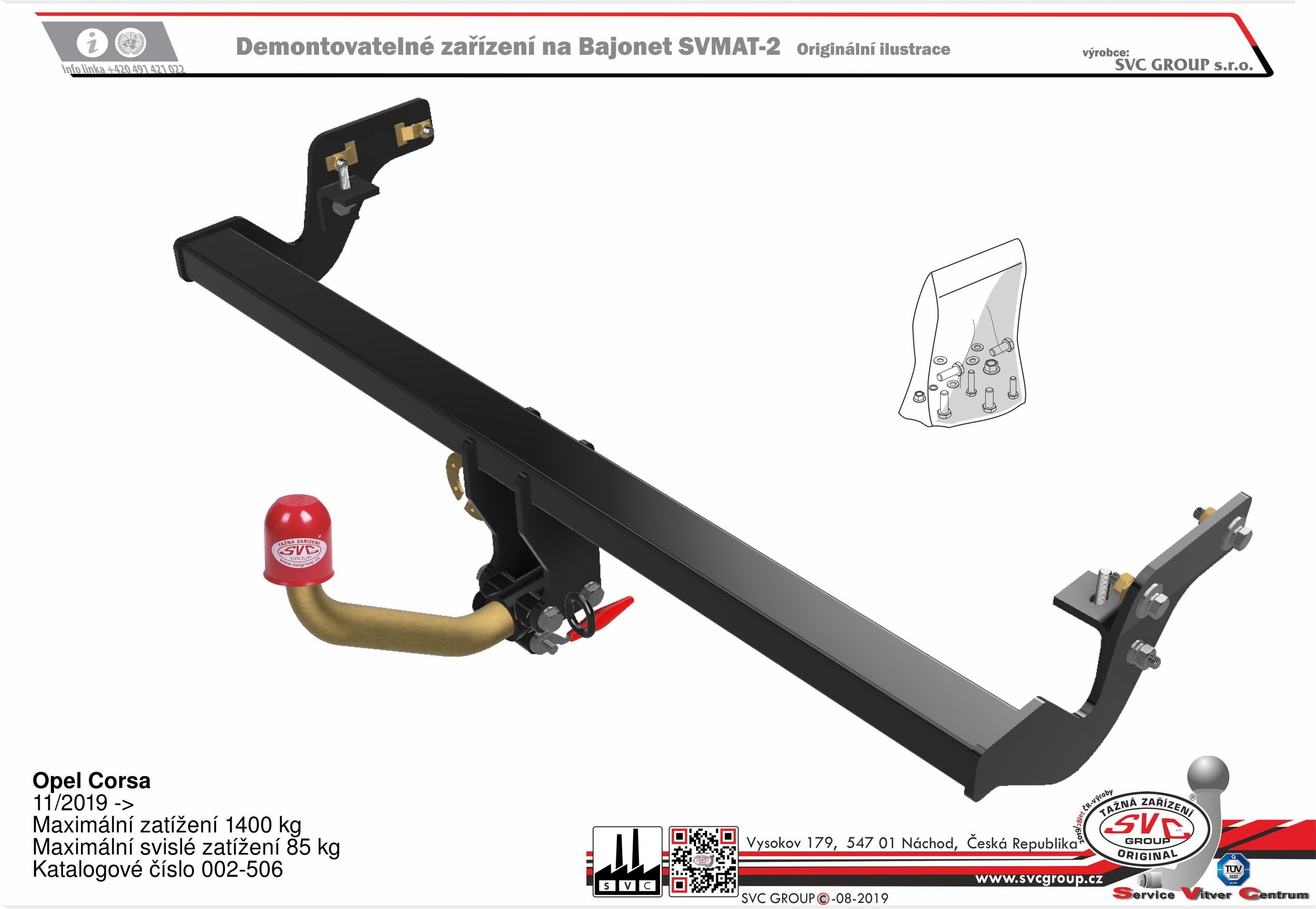 Výrobek je vyráběný dle požadavku vozu a Homologovaný pro prodej a provoz ve všech státech EU dle příslušných norem EHK-55R, podle zastaralé normy e94/20 zrušené již v roce 2016, která nesplňuje, dlouhodobě podmínky pro provoz nevyrábíme. Chráněný vzor SVC - bajonet SVMAT-2 je možné zaměnit za dvou šroubové provedení SVC, bez výměny tažného zařízení.