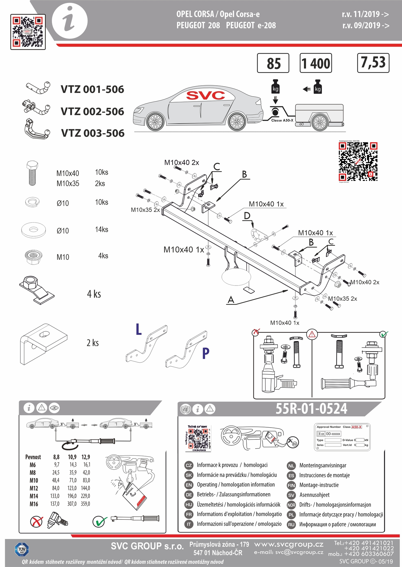 K tažnému zařízení je dodáván zdarma montážního návod, typový list pro zapsání do technického průkazu a na webu výrobce jsou rozšířené informace pro podporu montáže a použití výrobku.