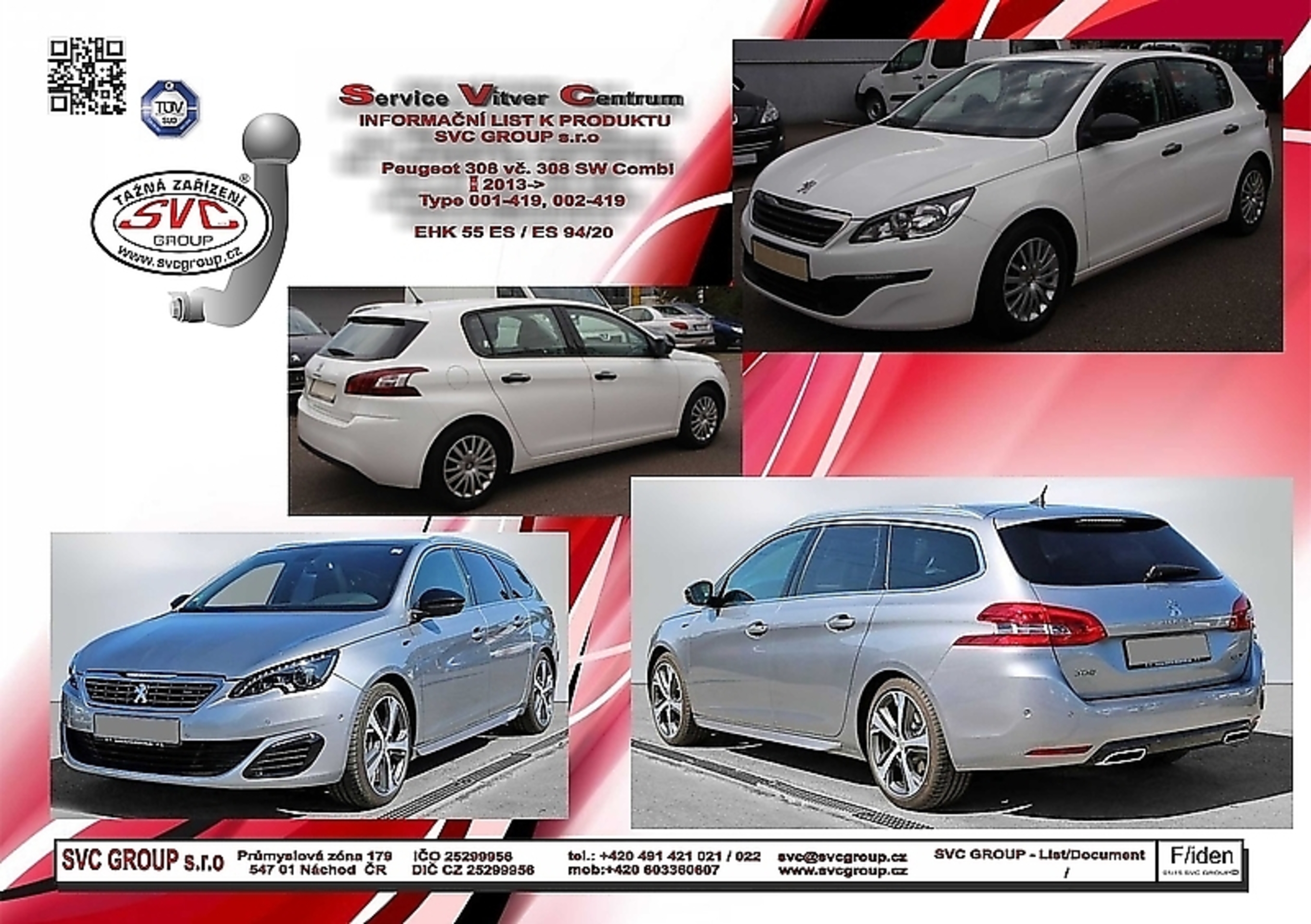 Tažná zařízení pro Peugeot 308 + Combi 09/2013-> 09/2021 / Určené i pro couvací radary  Tažné zařízení pro Peugeot 308 nelze namontovat na provedení GT - neumožňuje to výrobce vozu, Možné taky pro  vozidla s Hybridním pohonem. pokud to povoluje výrobce vozu.  Zdroj informací svc©group.eu Český výrobce s více jak 40 let na trhu