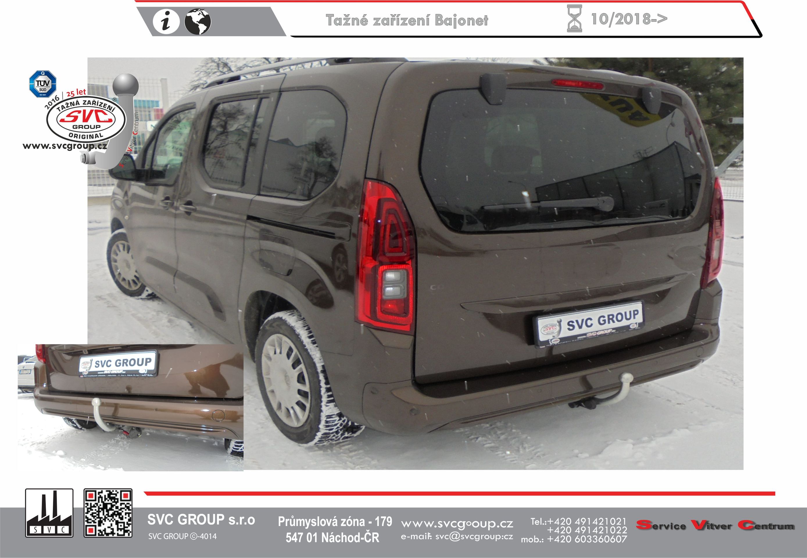 Výrobek je vyráběný dle požadavku vozu a Homologovaný pro prodej a provoz ve všech státech EU dle příslušných norem EHK-55R, podle zastaralé normy e94/20 zrušené již v roce 2016, která nesplňuje, dlouhodobě podmínky pro provoz nevyrábíme. Chráněný vzor SVC - bajonet SVMAT-2 je možné zaměnit za dvou šroubové provedení SVC, bez výměny tažného zařízení.
