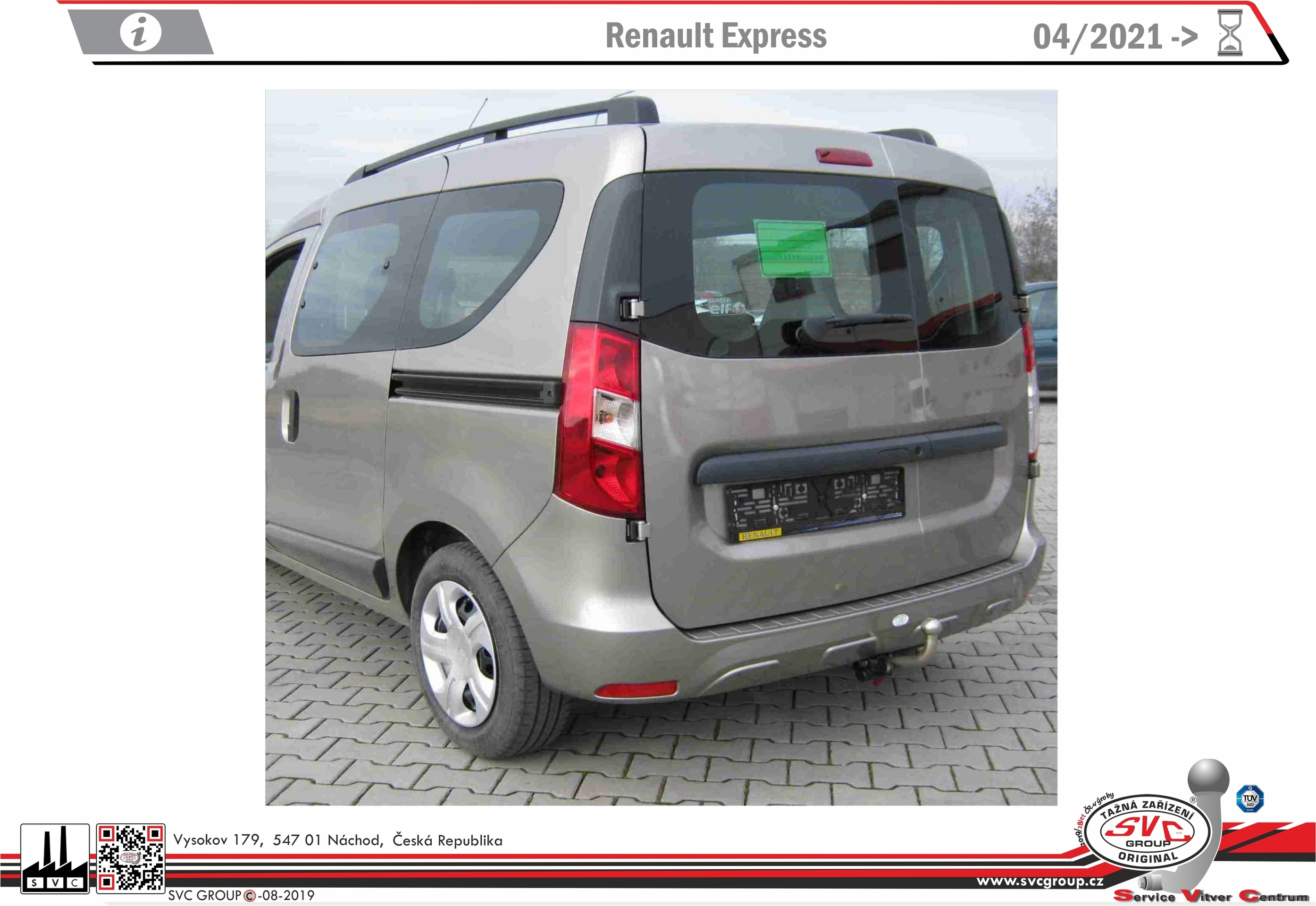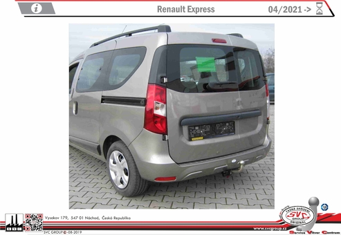 Tažné demontovatelné tažné zařízení Renault Expres 2021+ včetně: Express VAN + 7 místné verze a LPG