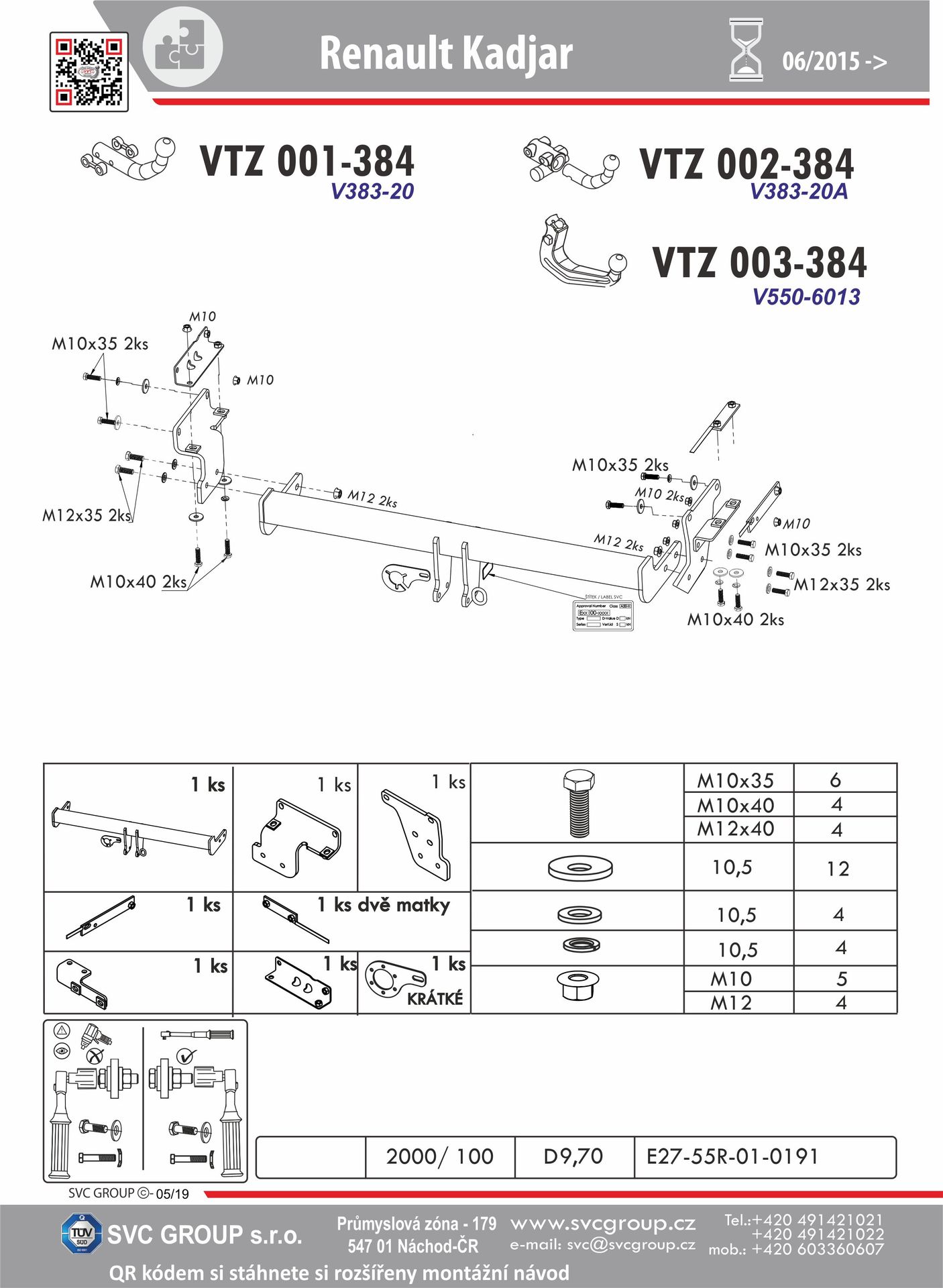 Výrobek je vyráběný dle požadavku vozu a Homologovaný pro prodej a provoz ve všech státech EU dle příslušných norem EHK-55R, podle zastaralé normy e94/20 zrušené již v roce 2016, která nesplňuje, dlouhodobě podmínky pro provoz nevyrábíme. Chráněný vzor SVC - bajonet SVMAT-2 je možné zaměnit za dvou šroubové provedení SVC, bez výměny tažného zařízení.