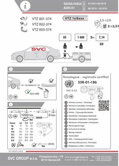 Výrobek je vyráběný dle požadavku vozu a Homologovaný pro prodej a provoz ve všech státech EU dle příslušných norem EHK-55R, podle zastaralé normy e94/20 zrušené již v roce 2016, která nesplňuje, dlouhodobě podmínky pro provoz nevyrábíme. Chráněný vzor SVC - bajonet SVMAT-2 je možné zaměnit za dvou šroubové provedení SVC, bez výměny tažného zařízení.