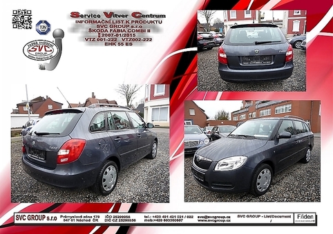 Výrobek je vyráběný dle požadavku vozu a Homologovaný pro prodej a provoz ve všech státech EU dle příslušných norem EHK-55R, podle zastaralé normy e94/20 zrušené již v roce 2016, která nesplňuje, dlouhodobě podmínky pro provoz nevyrábíme. Chráněný vzor SVC - bajonet SVMAT-2 je možné zaměnit za dvou šroubové provedení SVC, bez výměny tažného zařízení.