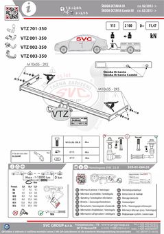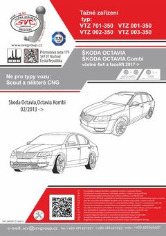 Tažné zařízení SVC Škoda Octavia + Combi od roku výroby 2013 i facelift ) dělená přední světla) v roce 2018 -> také pro 4x4 a diesel s AdeBlue. Dále pak včetně typů CNG s povolením v Technickém průkazu