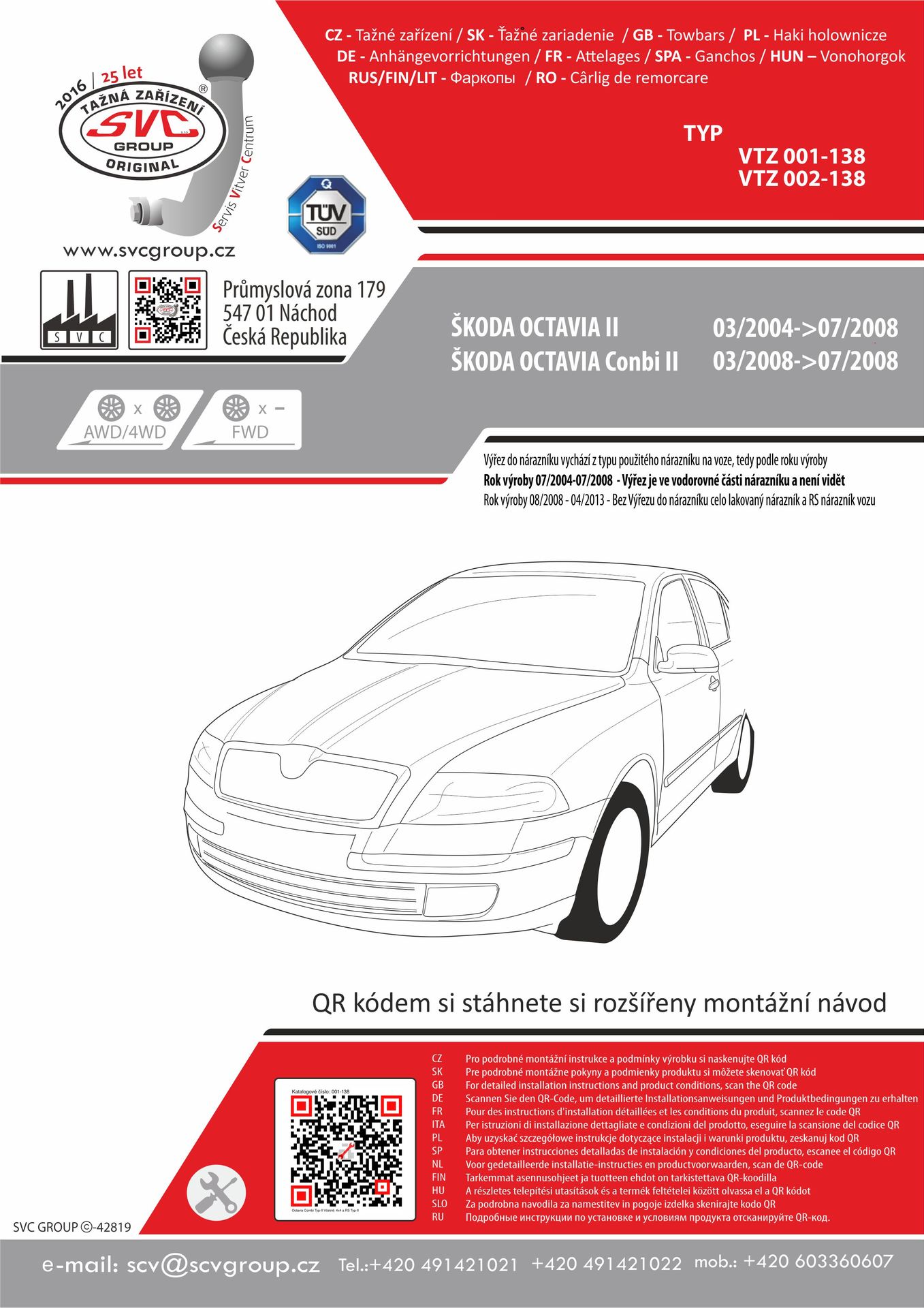 K tažnému zařízení je dodáván zdarma montážního návod, typový list pro zapsání do technického průkazu a na webu výrobce jsou rozšířené informace pro podporu montáže a použití výrobku.