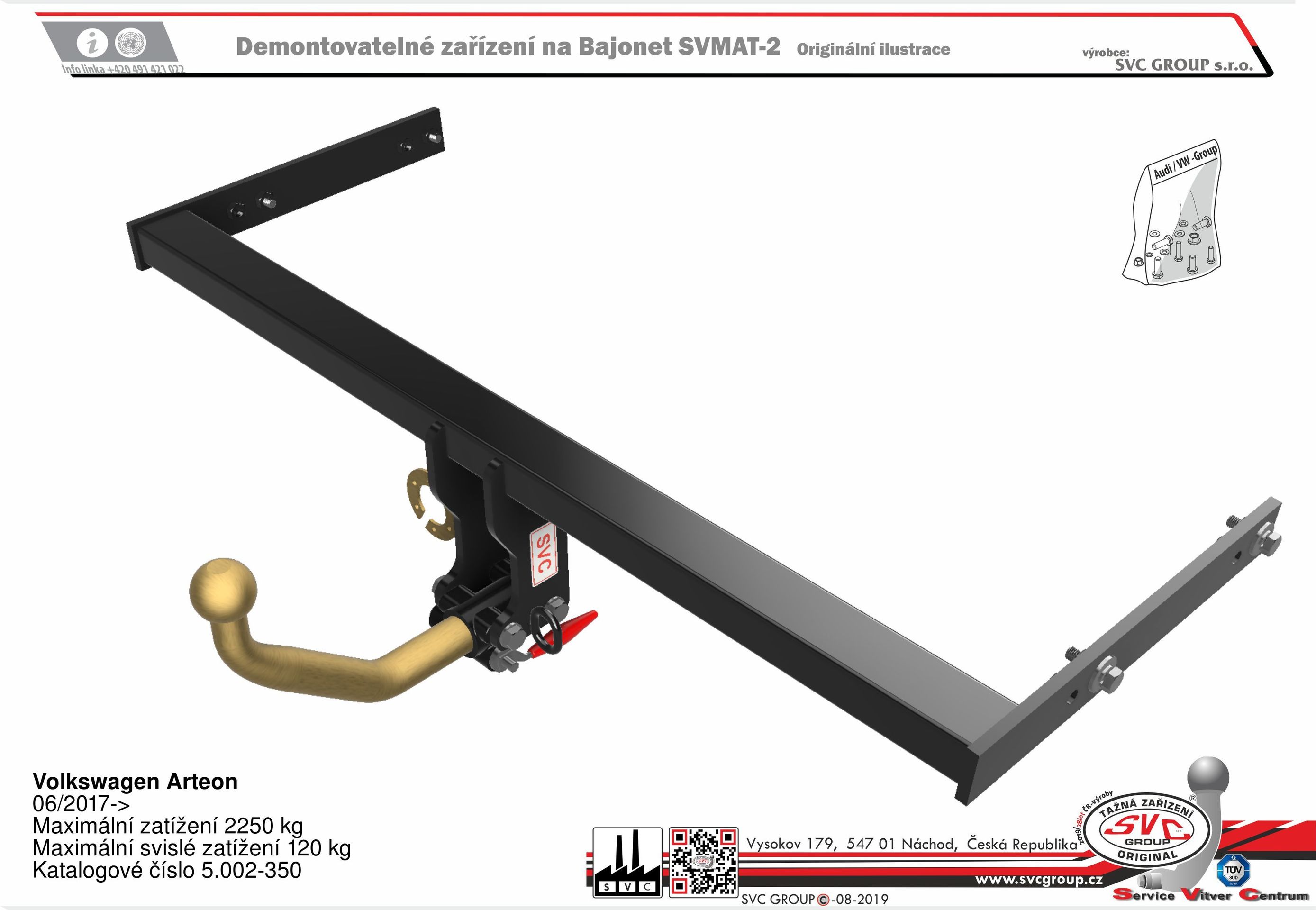 Tažné SVC pro Volkswagen Arteon Včetně 4-Motion (pohon kol-4x4) a ade blue a bez kontaktní otevíraní zadních dveří rok výroby 06/2017-> součástí dodávky jsou držáky anténního zesilovače pro případné použíti.