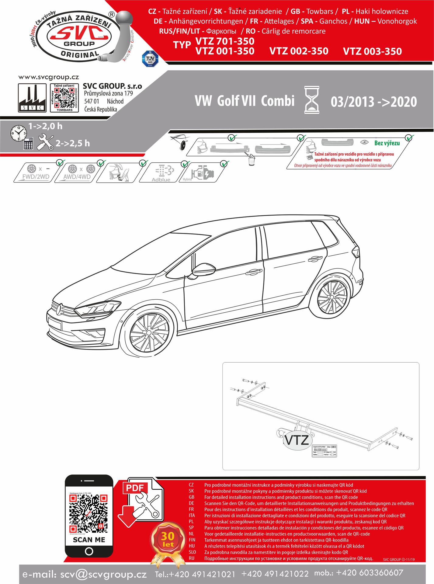 K tažnému zařízení je dodáván zdarma montážního návod, typový list pro zapsání do technického průkazu a na webu výrobce jsou rozšířené informace pro podporu montáže a použití výrobku.