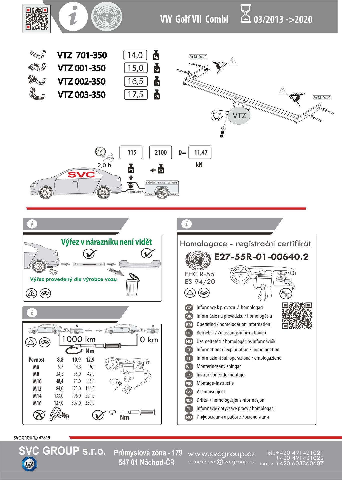 Výrobek je vyráběný dle požadavku vozu a Homologovaný pro prodej a provoz ve všech státech EU dle příslušných norem EHK-55R, podle zastaralé normy e94/20 zrušené již v roce 2016, která nesplňuje, dlouhodobě podmínky pro provoz nevyrábíme. Chráněný vzor SVC - bajonet SVMAT-2 je možné zaměnit za dvou šroubové provedení SVC, bez výměny tažného zařízení.