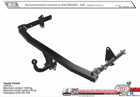 Dvou šroubové provedení SVC, nejpoužívanější a cenově nejdostupnější upevnění kulového čepu k zařízení, tak zvané upevnění kulového čepu na dva šrouby také nazývané napevno. Povrchová úprava je provedena metodou KTL v matném černém odstínu, které s četnými spodními hranami nárazníku nebudou rušit estetiku vašeho vozu po montáži tažného zařízení. Kulový čep se na základě nařízení EU nemusí demontovat z vozu, můžete jej mít celoročně namontovaný na voze, pokud nezakrývá registrační značku nebo činnou plochu osvětlení vozu, bez připojeného vozíku. Systém je průmyslově chráněný vzor a je záměnný z bajonetovým systémem SVMAT-2. Na základě norem ČSN je pohlíženo na šroubové provedení jako na rozebíratelný spoj za použití nářadí.