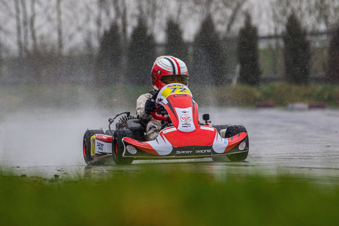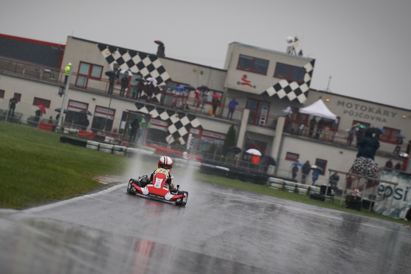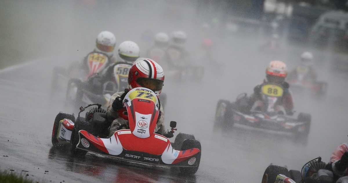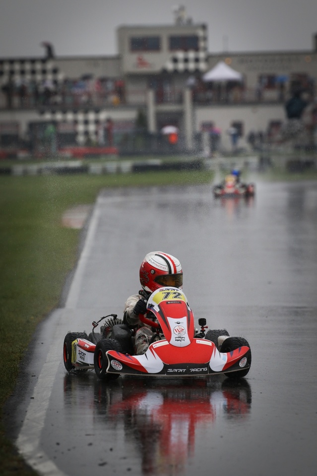 Neděle byla o jiném počasí, zima a mraky vody….. Protože jsme od začátku sezony neměli kde potrénovat vodu i když ji maty umí, byla domluvená do druhé závodní Matymu strategie, jeď opatrně aby jsi se netočil a nešel ven, pokus se dojet do 5 místa a budeme mít super pozici do Super finále za násobené body… Maty to vzal až moc doslova a jel fakt pomalu, ale nevypadl z trati jako skoro celý zbytek pole, kdy se některé káry tahaly i několikrát a dojel na pro nás super 3 místě a udržel si tak první pozici pro start v Super Finale….
