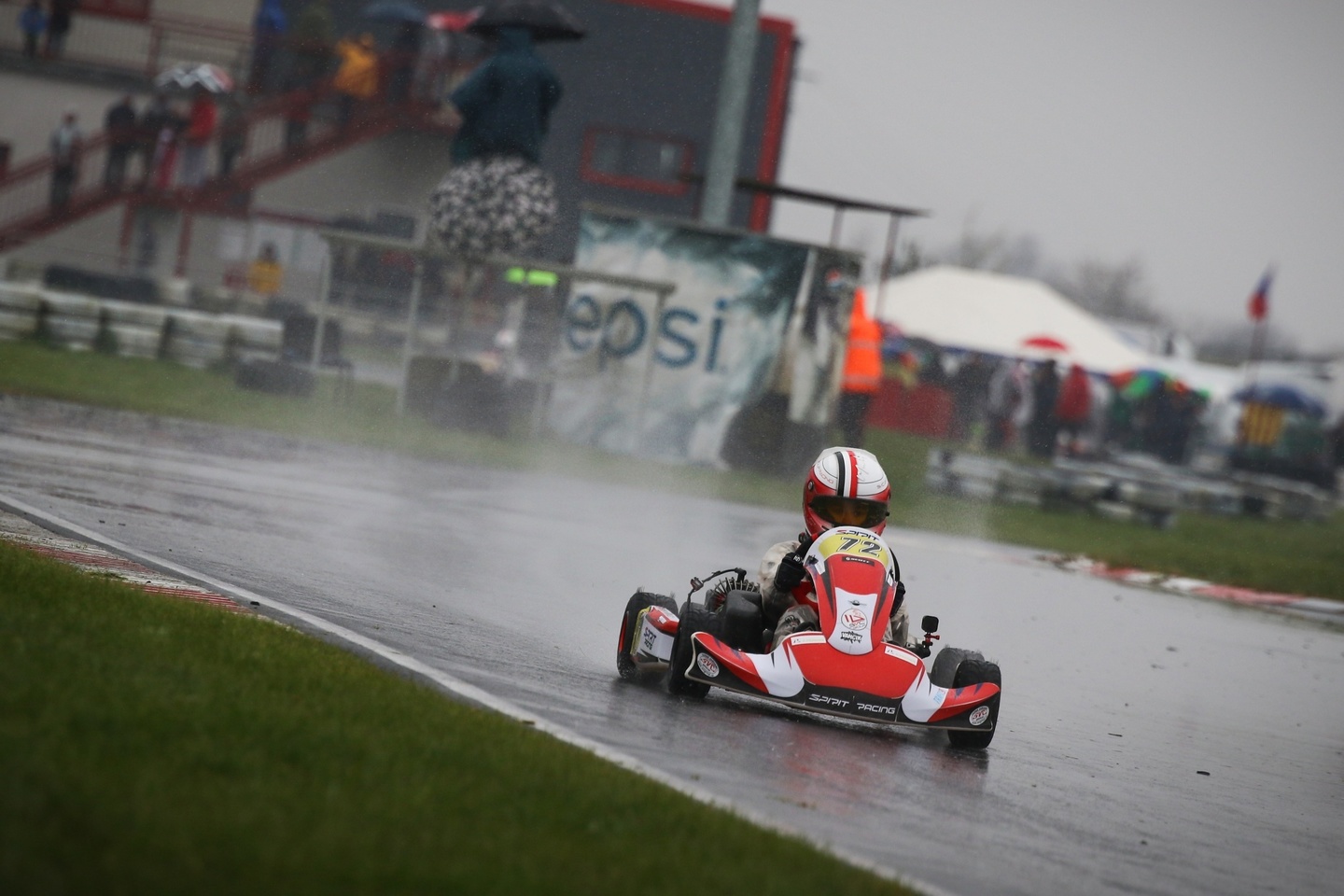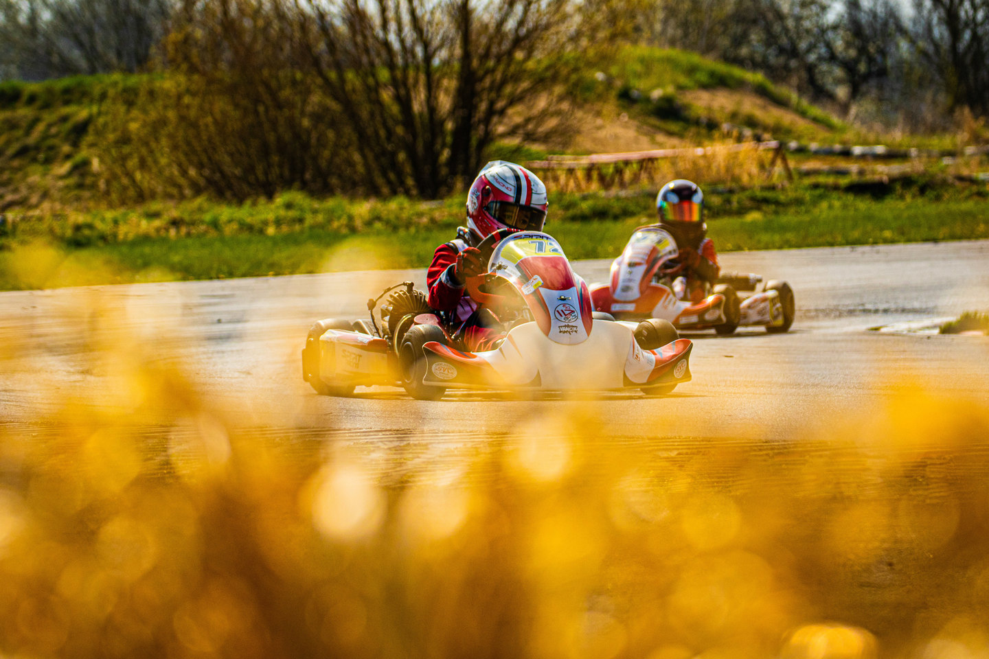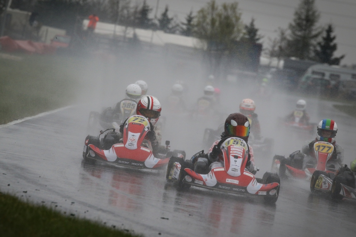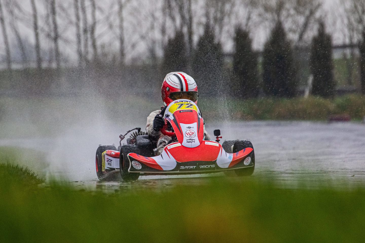 Neděle byla o jiném počasí, zima a mraky vody….. Protože jsme od začátku sezony neměli kde potrénovat vodu i když ji maty umí, byla domluvená do druhé závodní Matymu strategie, jeď opatrně aby jsi se netočil a nešel ven, pokus se dojet do 5 místa a budeme mít super pozici do Super finále za násobené body… Maty to vzal až moc doslova a jel fakt pomalu, ale nevypadl z trati jako skoro celý zbytek pole, kdy se některé káry tahaly i několikrát a dojel na pro nás super 3 místě a udržel si tak první pozici pro start v Super Finale….