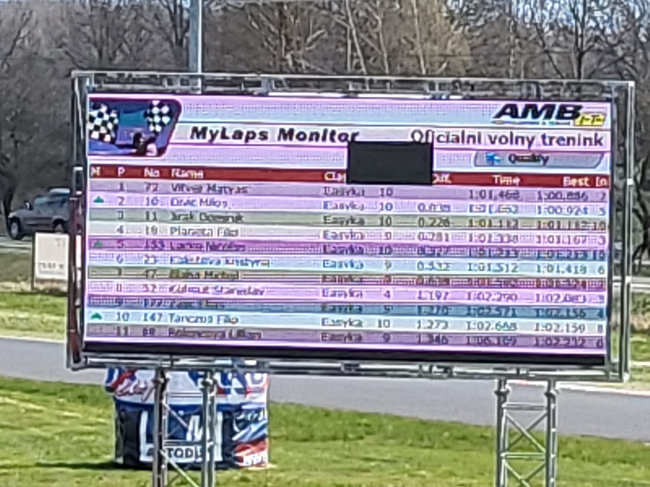 A tak nakonec rychlá trojka, která jela jinak hlavou, netočila se, nevyjela z trati, nemusela přijmout technickou pomoc, bojovala až do konce… dostala diskvalifikaci a do čela závodu se dostali ti, co využívali technickou pomoc a i třeba několikrát je natahovali zpátky na trať, jak jsme viděli tak některé i několikrát za kolo což mi dává na zamyšlenou zda to je podstata závodění. Nebudeme si namlouvat že nám to již přišlo kvůli klukům, kteří si fakt mákli a výchovně to bylo spíš kontraproduktivní, dost líto, ale takový je motorsport.