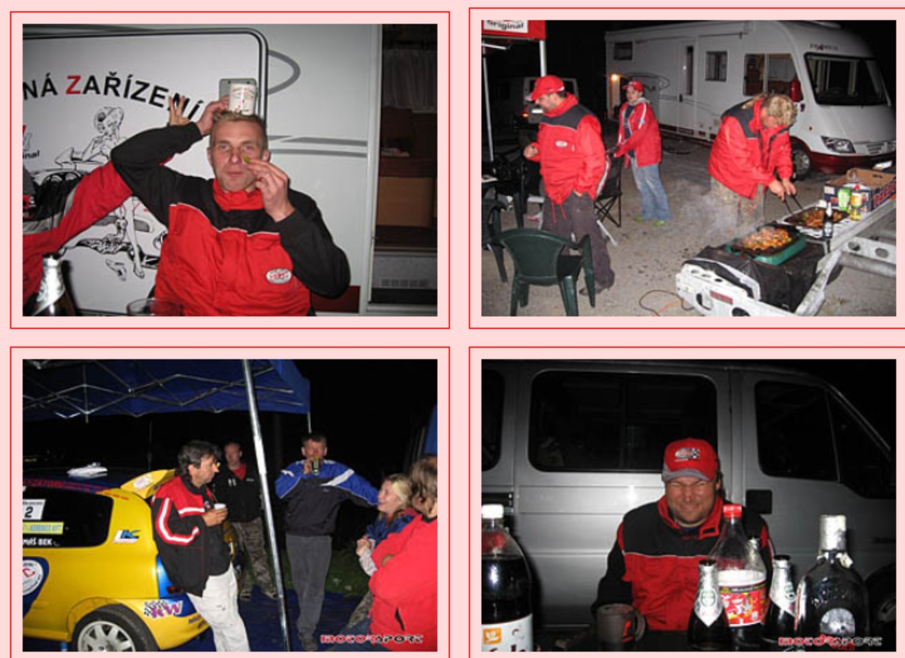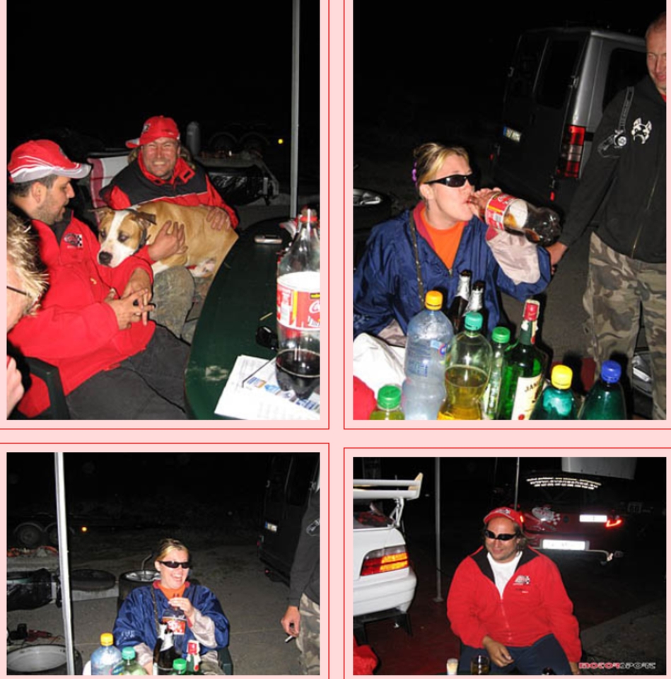 V pátek ráno jsme začali budovat tábor, mile nás překvapila okolní příroda, hlavně jehličnatý les, ve kterém nežijí klíšťata, mobilní záchod s ruční brzdou a hlavně horský potůček, ve kterém jsme chladili pivo. Největší obdiv ale sklidil Rosťa Pilař – OZZY, který po totální destrukci svého escorta ve Vrbně, dokázal během dvanácti dnů dorazit s novým vozem a odhodláním vrátit se na trať po takové ráně. Sobotní tréningové jízdy napověděly, že se chystá velice dramatický závod mezi M. Šípkem BMW M3 VPT, J.Čermákem ŠKODA OCTÁVIA a M. Novickým na formuli FASTER NINJA.