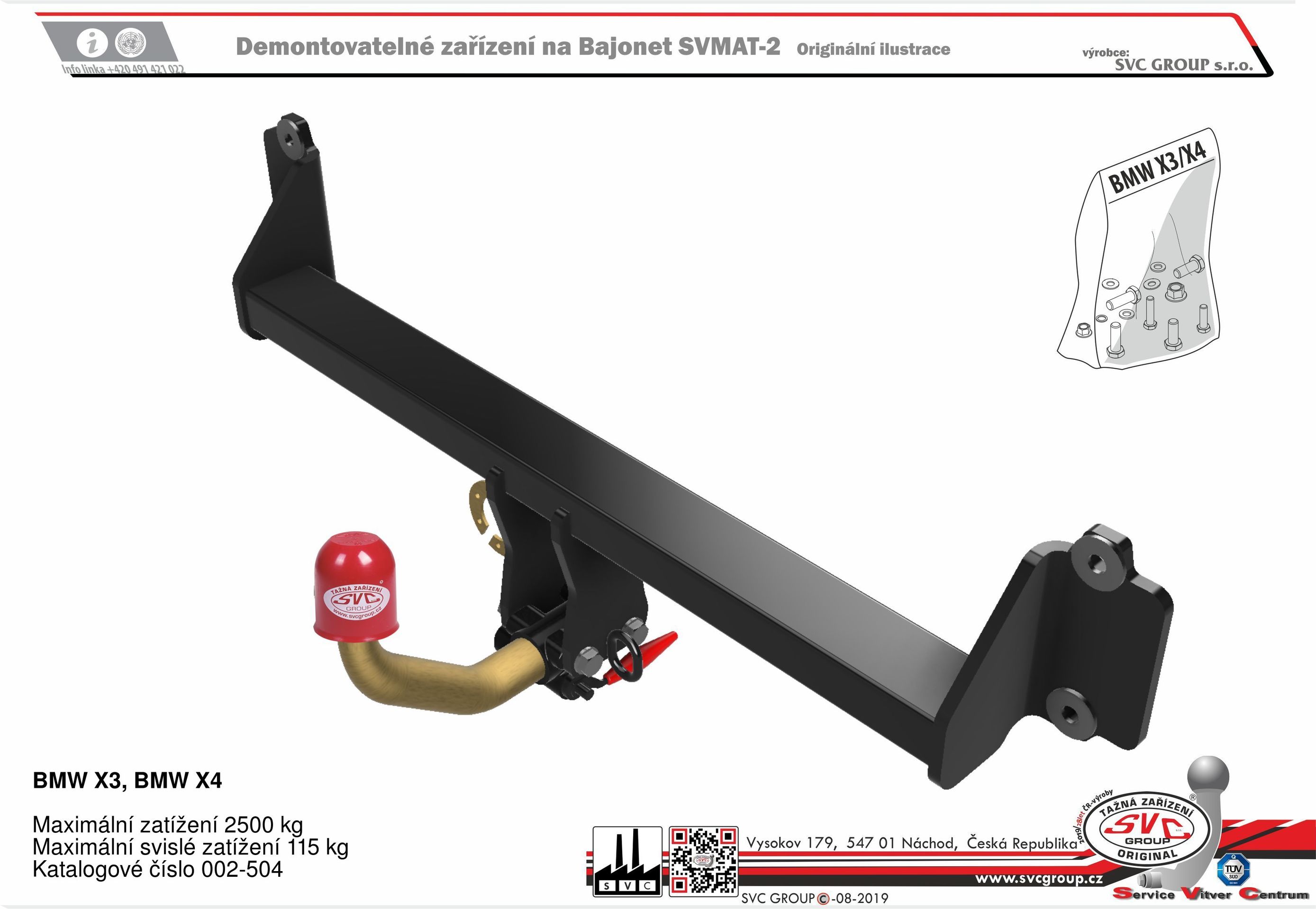 Tažné zařízení demontovatelné pro BMW X3 11/2010->12/2017 X4M a pro BMW X4 rok výroby včetně X-Drive 4x4 a M- paketu a M-Sport nárazník na voze - Pokud je na voze typu X-3M a X-4M povolené tažné zařízení výrobcem vozu je možné tažné zařízení na tyto vozy použít. Také pro vozy s bezkontaktním otevíráním zadních dveří zavazadelníku.