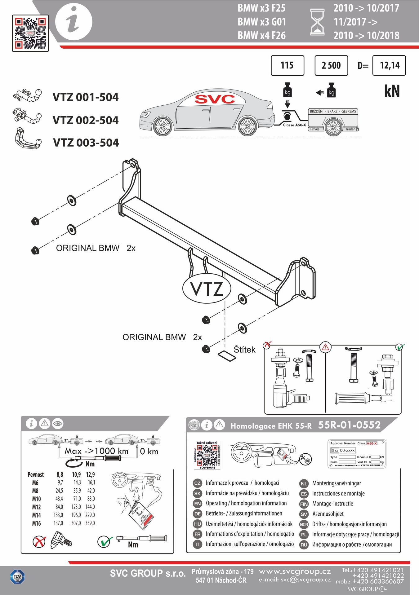 Výrobek je vyráběný dle požadavku vozu a Homologovaný pro prodej a provoz ve všech státech EU dle příslušných norem EHK-55R, podle zastaralé normy e94/20 zrušené již v roce 2016, která nesplňuje, dlouhodobě podmínky pro provoz nevyrábíme. Chráněný vzor SVC - bajonet SVMAT-2 je možné zaměnit za dvou šroubové provedení SVC, bez výměny tažného zařízení.