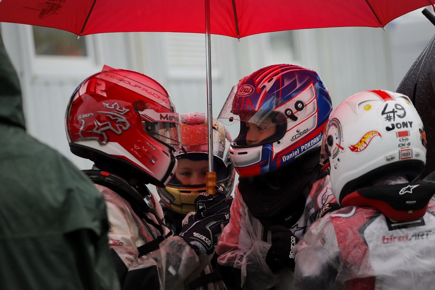 Těšili jsme se na neděli, kdy mělo hodně pršet a mokrá trať maže výkony motokár a tak jsme měli šanci díky základnímu nastavení posunout se dopředu. Start vyšel nádherně a Matyas se posunul z 6 pozice na P1, kterou si s jedním z kolegů z tratě vyměňovali, ten ale bohužel již jako v písku neudržel nervy na uzdě, roztočil se těsně před námi a Matyas aby zabránil ráně, musel strhnout káru mimo trať a velikou oklikou se vrátil spět až na 15 pozici a začala jeho královská stíhací jízda na bodované pozice, kdy jeho časy byli o cca 0,7 s na kolo rychlejší než ostatní a probojoval se na krásné 4 místo celkově.