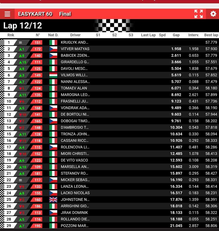 Po soborní kvalifikaci a třech závodních jizdách, které určili startovní pozice pro nedělní Grande finale nejrychlejších jezdců A - skupiny. Maty nám udělal ohromnou radost s celkově druhého místa ze 49 startujicích pilotů na tomo setkaní mistrů. Umístnil se hned za Italským championem posledních dvou sezón..