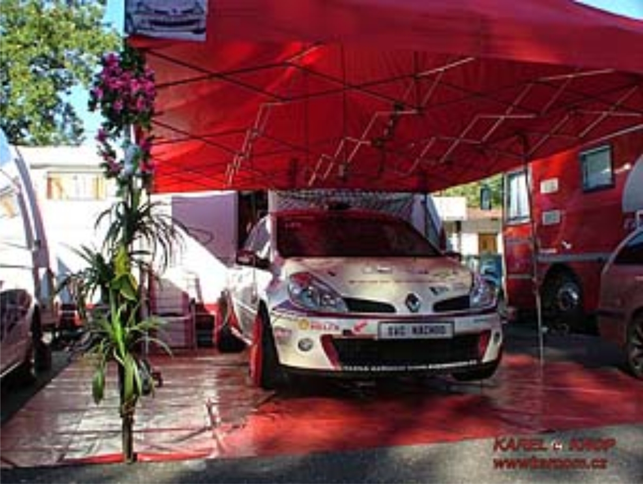 V noci jsme rozložili náš skromný stánek v depu, tady mě to nedá a musím se zmínit o sousedech, z leva na jedné straně Kašpárkovi, ve správné pozici a to z PRAVA, pan premiér M. Topolánek a před námi celý Komárkův Komvet. Jak jme si tak prohlíželi vozy sousedu na levo, u Červeného autobusu a Komvetu, nemůžeme se zbavit dojmu, že mají všichni něco za lubem, cituji jmenovky jezdců, Rybníček, Vodička, Komárek, Kašpárek. Ve VIP stanu jsem nechtěně zaslechl, že se prý staví nové závodní oddělení, někde u přehrady na Pastvinách a že by prý další do party mohla být žena. Že by malá mořská (přehradní) víla?