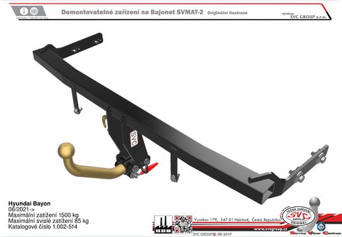 Výrobek je vyráběný dle požadavku vozu a Homologovaný pro prodej a provoz ve všech státech EU dle příslušných norem EHK-55R, podle zastaralé normy e94/20 zrušené již v roce 2016, která nesplňuje, dlouhodobě podmínky pro provoz nevyrábíme. Chráněný vzor SVC - bajonet SVMAT-2 je možné zaměnit za dvou šroubové provedení SVC, bez výměny tažného zařízení.