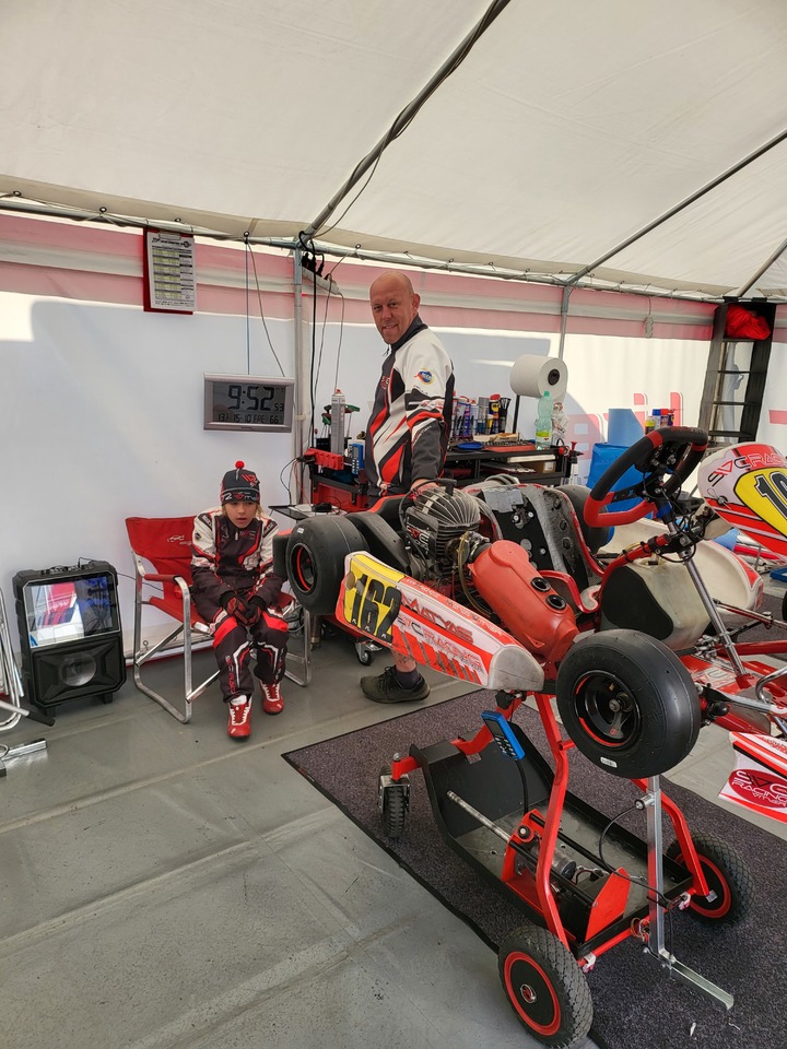 Od čtvrtka jsme nacvičovali naší slabší stránku a tou jsou Kvalifikace, né snad, že by Matyasovi chyběla rychlost, dle měřených časů ukazoval, že patří do top 13, ale v Kvaldě ho vždy sváže tréma a jak moc chce, tak to je k horšímu a jezdívali jsme časy o cca 1 vteřku pomalejší. Tomu to jsme se již snad konečně vyvarovali.
