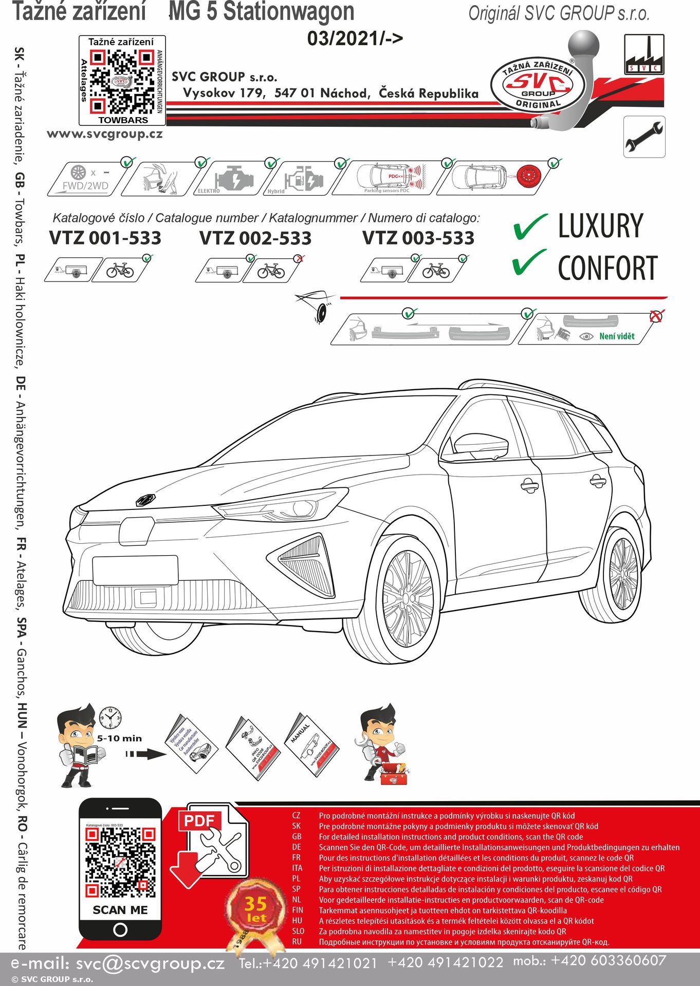 Tažné zařízení levné na pevno od SVC GROUP lze použít na všech typech vozu  MG 5 / MG 5 EV / MG 5 Stationwagon  / Demontovatelné tažné zařízení 002-533 nedoporučujeme pro nosiče kol - tyto nosiče každý zákazník přetěžuje a nedodržuje vyhlášku a proto pokud za vozidlem budete vozit převážně nosiče kol, doporučujeme tažné zařízení: 0015-33 nebo prémiové vertikální bajonet - kat číslo 003-533 kde po demontáži čepu není vidět, že by vozidlo bylo vybavené tažným zařízením.   SVC GROUP