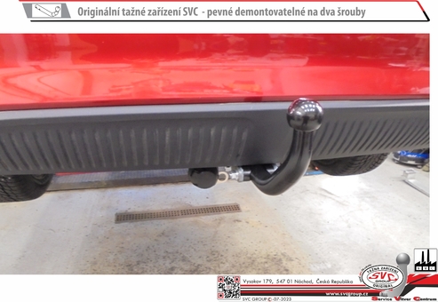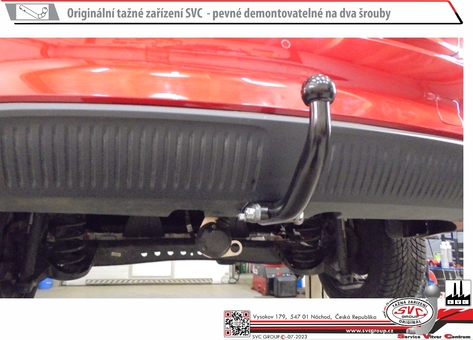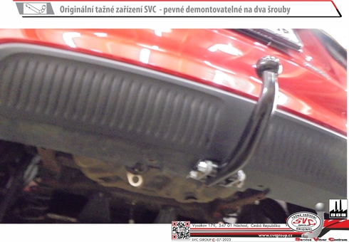 Dvou šroubové provedení SVC, nejpoužívanější a cenově nejdostupnější upevnění kulového čepu k zařízení, tak zvané upevnění kulového čepu na dva šrouby také nazývané napevno. Povrchová úprava je provedena metodou KTL v matném černém odstínu, které s četnými spodními hranami nárazníku nebudou rušit estetiku vašeho vozu po montáži tažného zařízení. Kulový čep se na základě nařízení EU nemusí demontovat z vozu, můžete jej mít celoročně namontovaný na voze, pokud nezakrývá registrační značku nebo činnou plochu osvětlení vozu, bez připojeného vozíku. Systém je průmyslově chráněný vzor a je záměnný z bajonetovým systémem SVMAT-2. Na základě norem ČSN je pohlíženo na šroubové provedení jako na rozebíratelný spoj za použití nářadí.