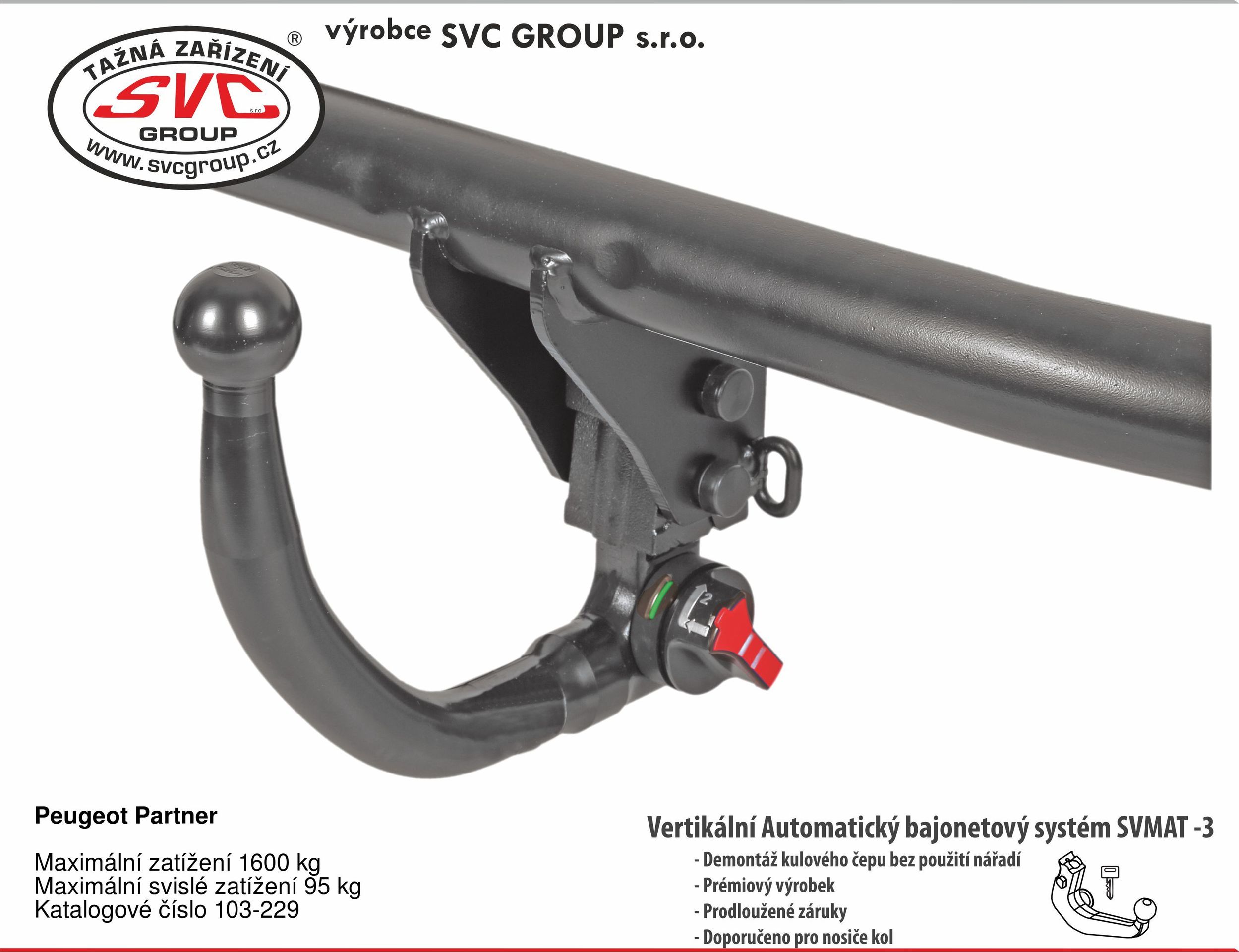 Bajonet Automat SVMAT-3 vertikální, pro demontáž kulového čepu z tažného zařízení bez použití nářadí.