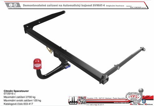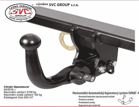 Platí pro  tažné zařízení SVC Group a originální přípojky ECS dodávané SVC Group, tedy tažná zařízení vyráběná dle EU homologací: