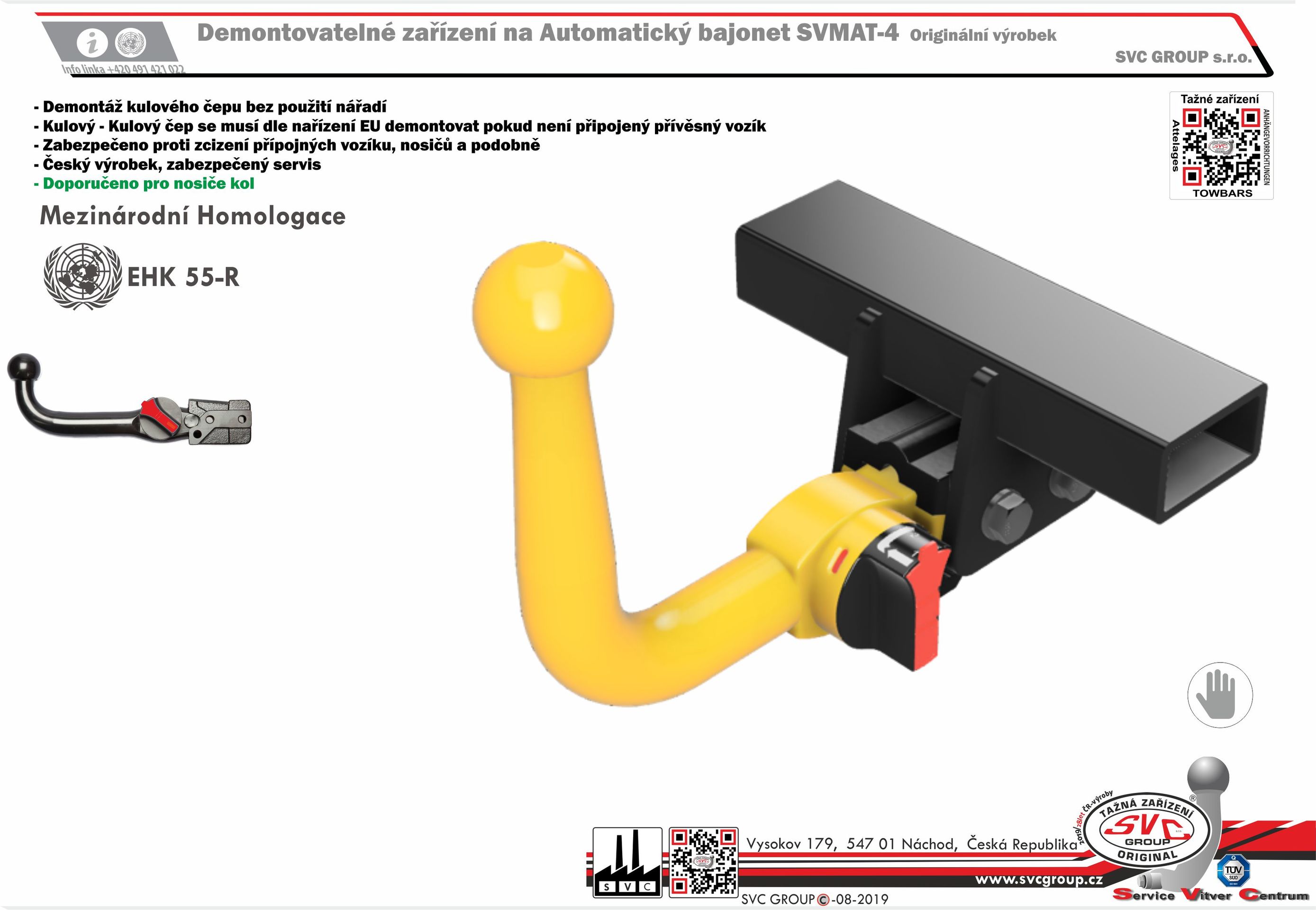 Nově zaváděný výrobek v roce 2017 je nástupcem používaného bajonetového uzávěru SVMAT-2, který garantuje nové požadavky na tažné zařízení ve spojení s nosiči kol a stabilizačními systémy integrovaných ve spojovacím zařízení obytných přívěsů.