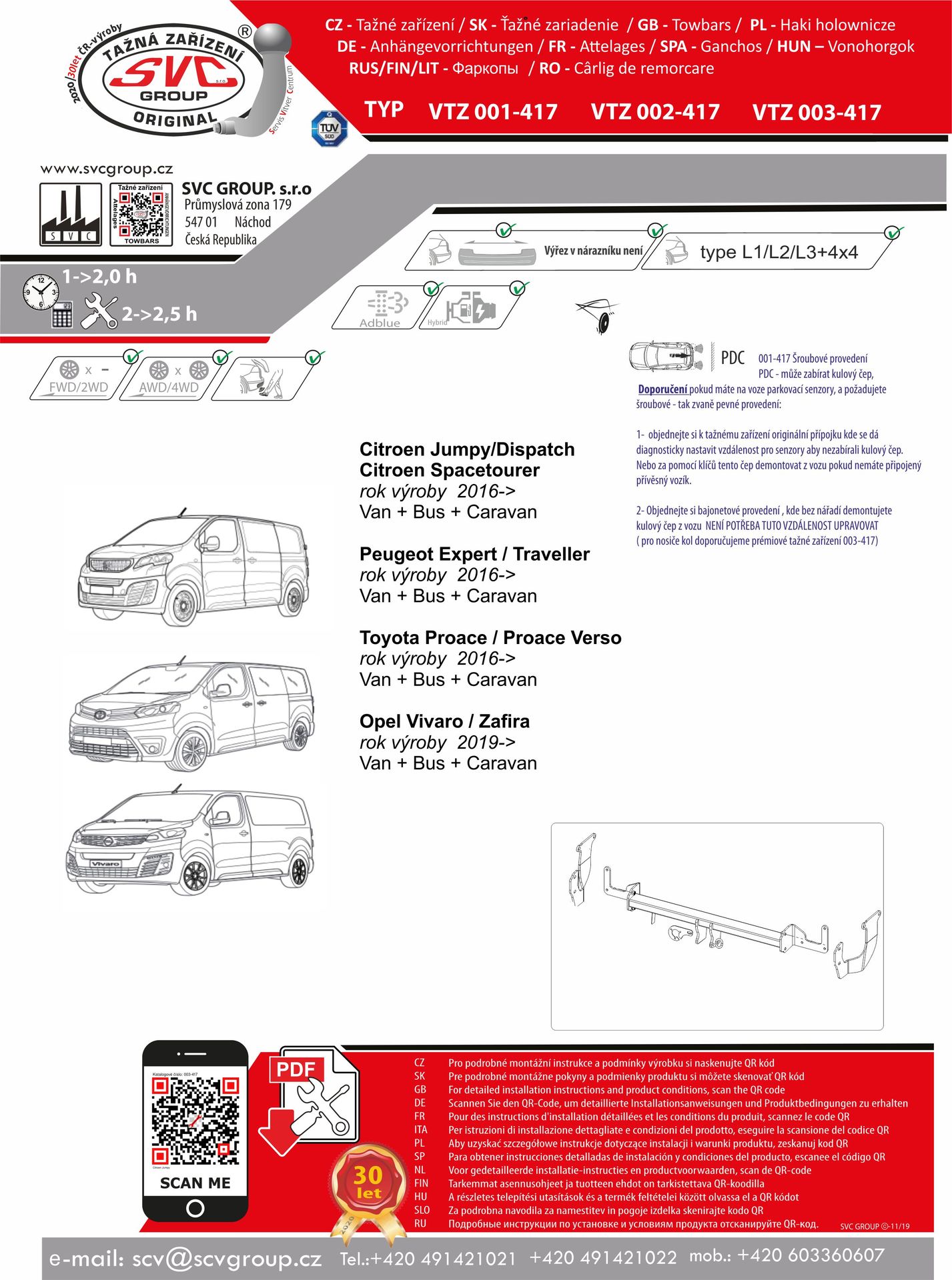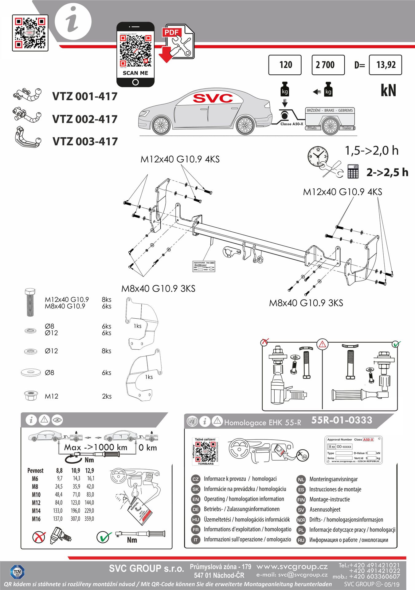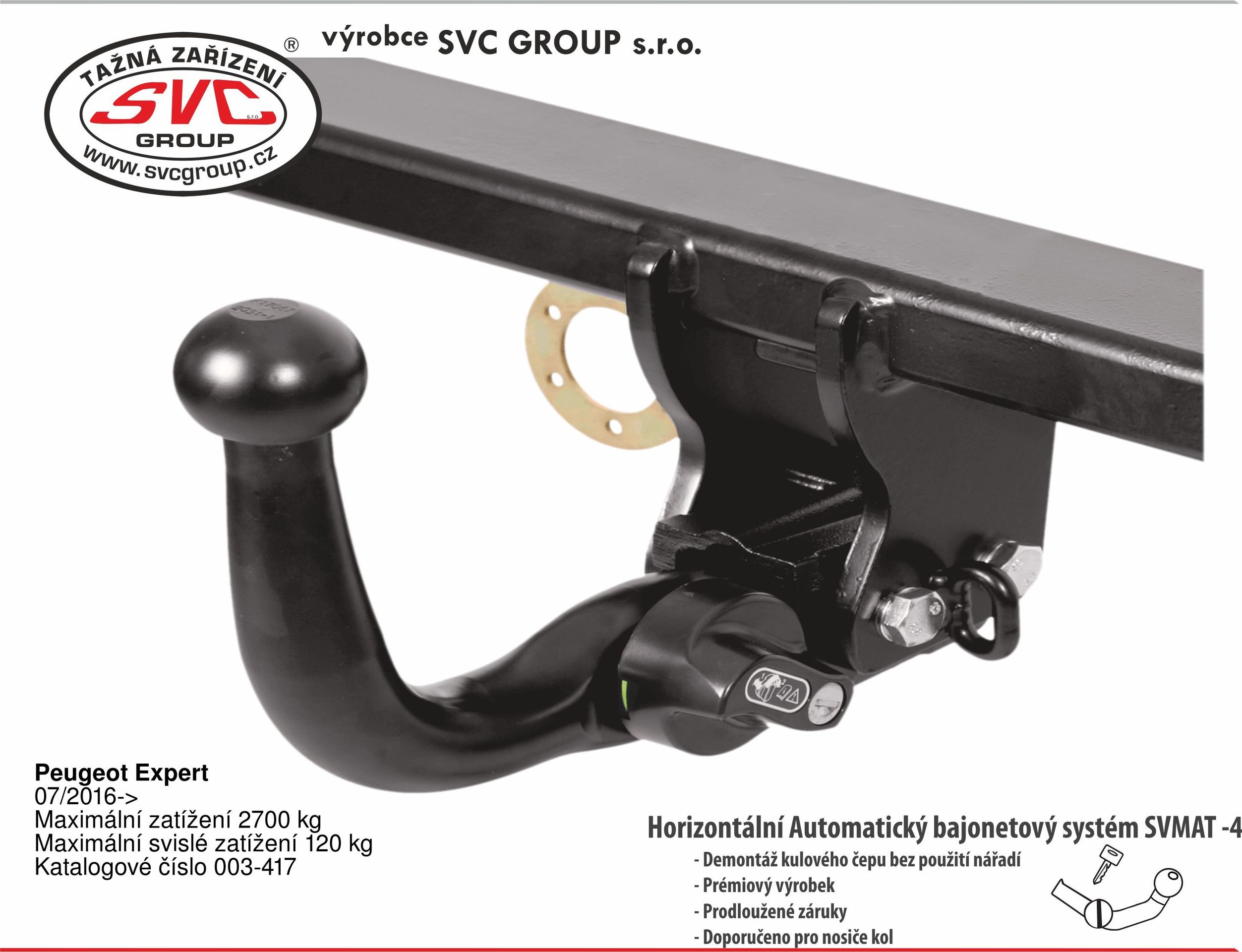 Platí pro  tažné zařízení SVC Group a originální přípojky ECS dodávané SVC Group, tedy tažná zařízení vyráběná dle EU homologací: