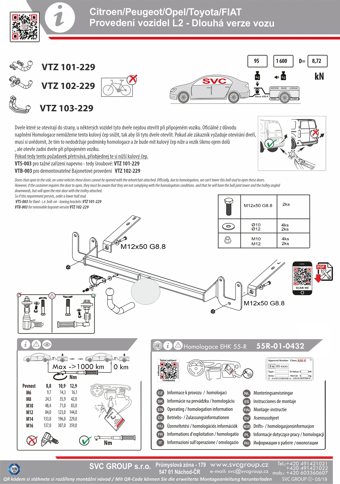 K tažnému zařízení je dodáván zdarma montážního návod, typový list pro zapsání do technického průkazu a na webu výrobce jsou rozšířené informace pro podporu montáže a použití výrobku.