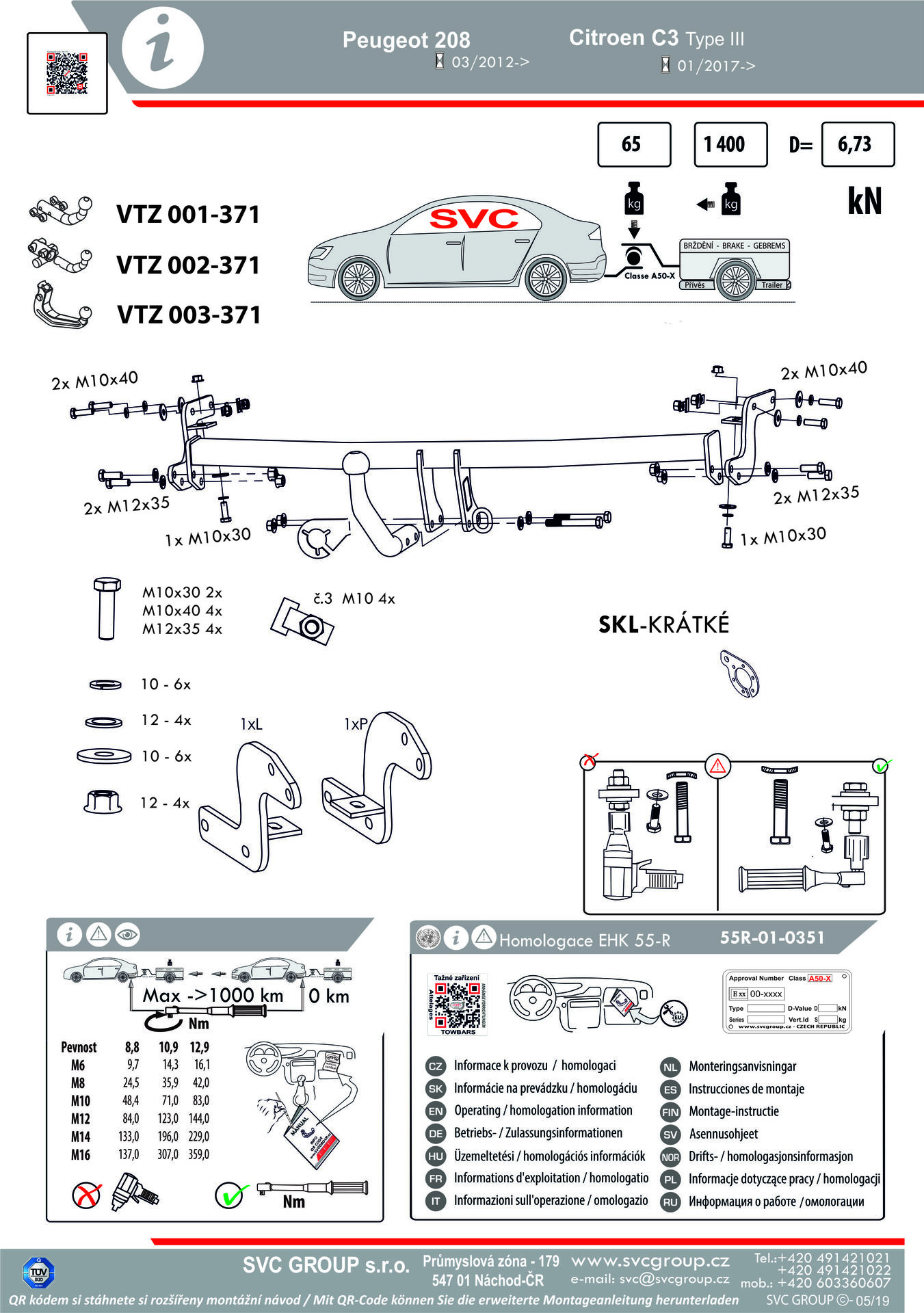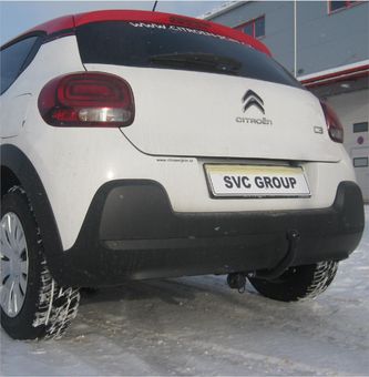 Levné tažné zařízení  Citroen C3  01/2017-> pro demontovatelné na šrouby . zvané také jako pevné Originální výrobek SVC Group . U některých vozidel byl problém s Couvacími senzory, bohužel nevíme která šarže couvacích s výroby to byla... při teto šarži je potřeba individuálně upravit vnitřní část nárazníku pro couvací senzory.