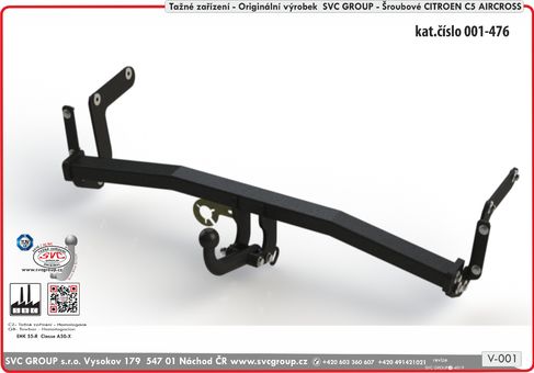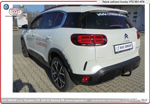 Levné tažné pro Citroën C5 Aircross 01/2019 -> Tažné zařízení vhodné i pro vozidla s rezervou pod vozem U některých typů vozidel záleží na výbavě, může u dvou šroubového provedení zachytávat kulový čep couvací senzory PDC, proto doporučujeme bajonetové tažné zařízení.  Český výrobce s více jak 40 let na trhu + servis výrobků