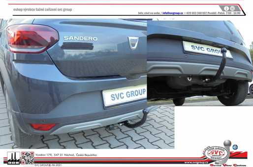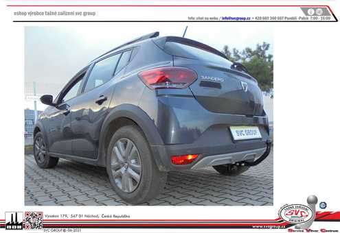Levné tažné zařízení napevno - Dacia Sandero/Stepway 01/2021-> na dva šrouby. Včetně pohonu vozu na LPG a s AdBlue. Modelová řada od roku 01/2021->  zesílená verze - český výrobce