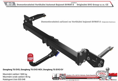 Prémiové tažné pro Dongfeng T5 EVO + Dragon Edition, včetně hybridní a elektrické verze 2022- INFORMACE  kulový čep je demontován automatickým systémem kulového čepu.  - PRÉMIOVÉ TAŽNÉ ZAŘÍZENÍ OD SVC GROUP tažné zařízení s bez nářaďovým AUTOMATICKÝM odnímatelným systémem.  Po demontáži čepu z vozu není na voze vidět že je vybavené tažným zařízením - Pokud výrobek nepožadujete pro nadstandartní funkce karavanu či pro dobíjení baterek karavanu, zvolte Levnou Univerzální elektro přípojku Z00-008. Couvací senzory nemusíte odpojovat, vozidlo má případně vypínač na přístrojové desce.