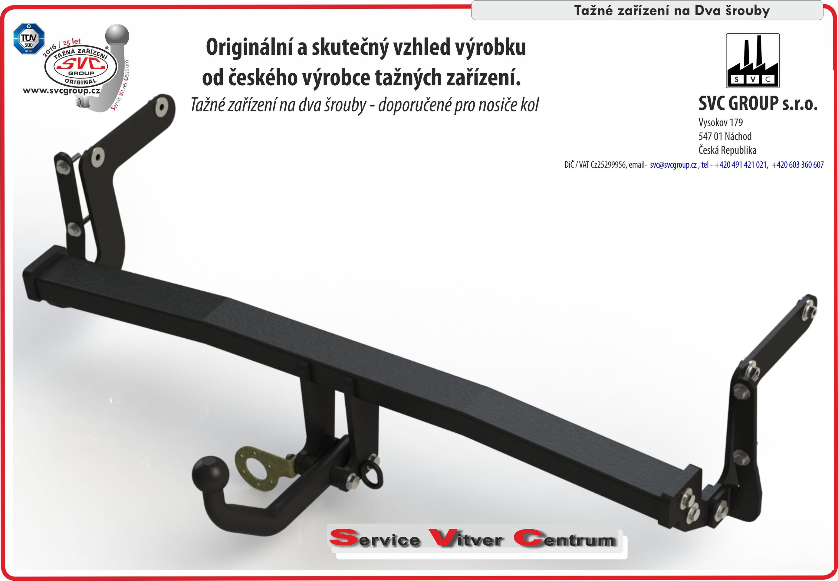 Originální výrobek od SVC neomezuje záruku vašeho vozu po montáži tažného zařízení na vozidlo a  doporučujeme pro použití u samosvorných stabilizačních systémů obytných přívěsu a nosičů kol, typ uložení kulového čepu je chráněn užitným vzorem – umožňující na tažné zařízení montáž různých adaptérů.