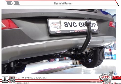 Levné tažné pro Hyundai Bayon označované také jako III od roku výroby 2020 -> Tažné zařízení nahrazuje plnohodnotně výztuhu nárazníku. Tato výztuha pod zadním nárazníkem se musí při montáži tažného zařízení demontovat z vozu. Konstrukce tažného zařízení od SVC tuto výztuhu pod nárazníkem nahrazuje. Chrání tím posádku vozu při případném nárazu zezadu, včetně vozidel s AdBlue, Hybrid, LPG