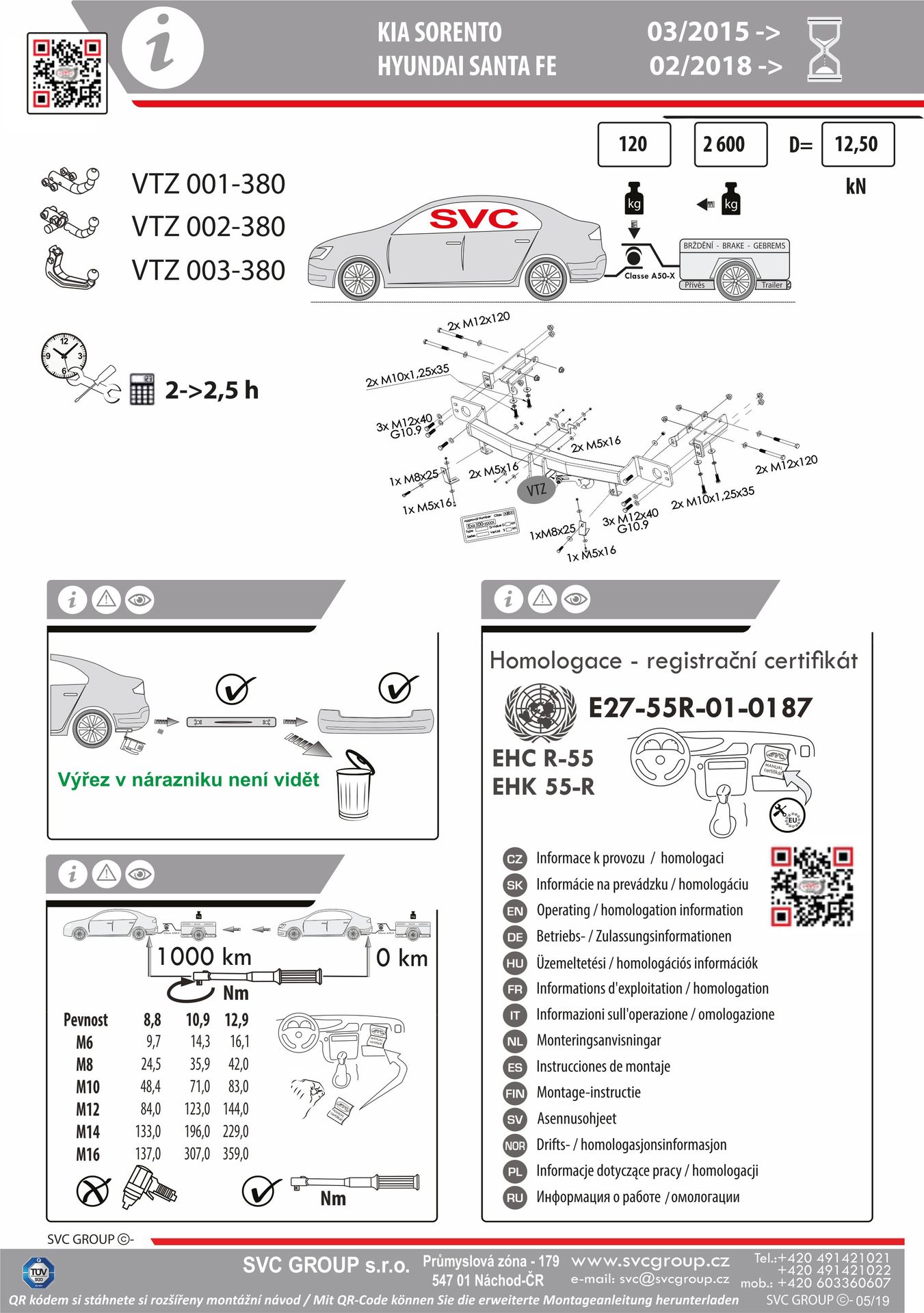 K tažnému zařízení je dodáván zdarma montážního návod, typový list pro zapsání do technického průkazu a na webu výrobce jsou rozšířené informace pro podporu montáže a použití výrobku.