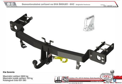 Dvou šroubové provedení SVC, nejpoužívanější a cenově nejdostupnější upevnění kulového čepu k zařízení, tak zvané upevnění kulového čepu na dva šrouby také nazývané napevno. Povrchová úprava je provedena metodou KTL v matném černém odstínu, které s četnými spodními hranami nárazníku nebudou rušit estetiku vašeho vozu po montáži tažného zařízení. Kulový čep se na základě nařízení EU nemusí demontovat z vozu, můžete jej mít celoročně namontovaný na voze, pokud nezakrývá registrační značku nebo činnou plochu osvětlení vozu, bez připojeného vozíku. Systém je průmyslově chráněný vzor a je záměnný z bajonetovým systémem SVMAT-2. Na základě norem ČSN je pohlíženo na šroubové provedení jako na rozebíratelný spoj za použití nářadí.