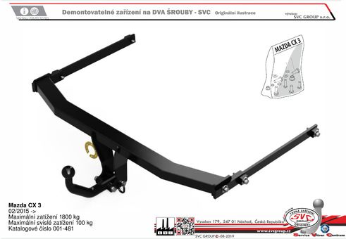 Levné tažné pro Mazda CX 3 od roku výroby 05/2015 -> i pro Facelift . Také pro vozidla i s AdBlue Tažné zařízení plnohodnotně nahrazuje výztuhu pod nárazníkem, což u rovného nosníku není možné.